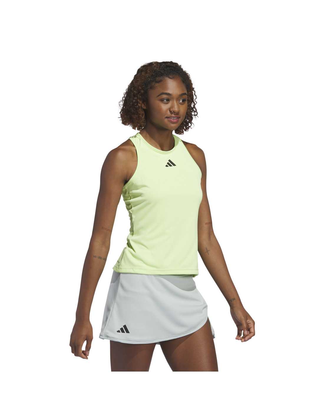 Descobreix estil i rendiment a la pista amb la samarreta sense mànigues Adidas Club Tank, dissenyada específicament per a dones. Part de la col·lecció Adidas Club, aquesta samarreta combina un teixit elàstic amb un disseny d'esquena esportiva per atorgar una llibertat total de moviment. Gràcies a la seva malla transpirable i la tecnologia AEROREADY, manté la pell seca, assegurant confort en cada partit. A més, la seva confecció en materials reciclats reforça el seu compromís amb la sostenibilitat.