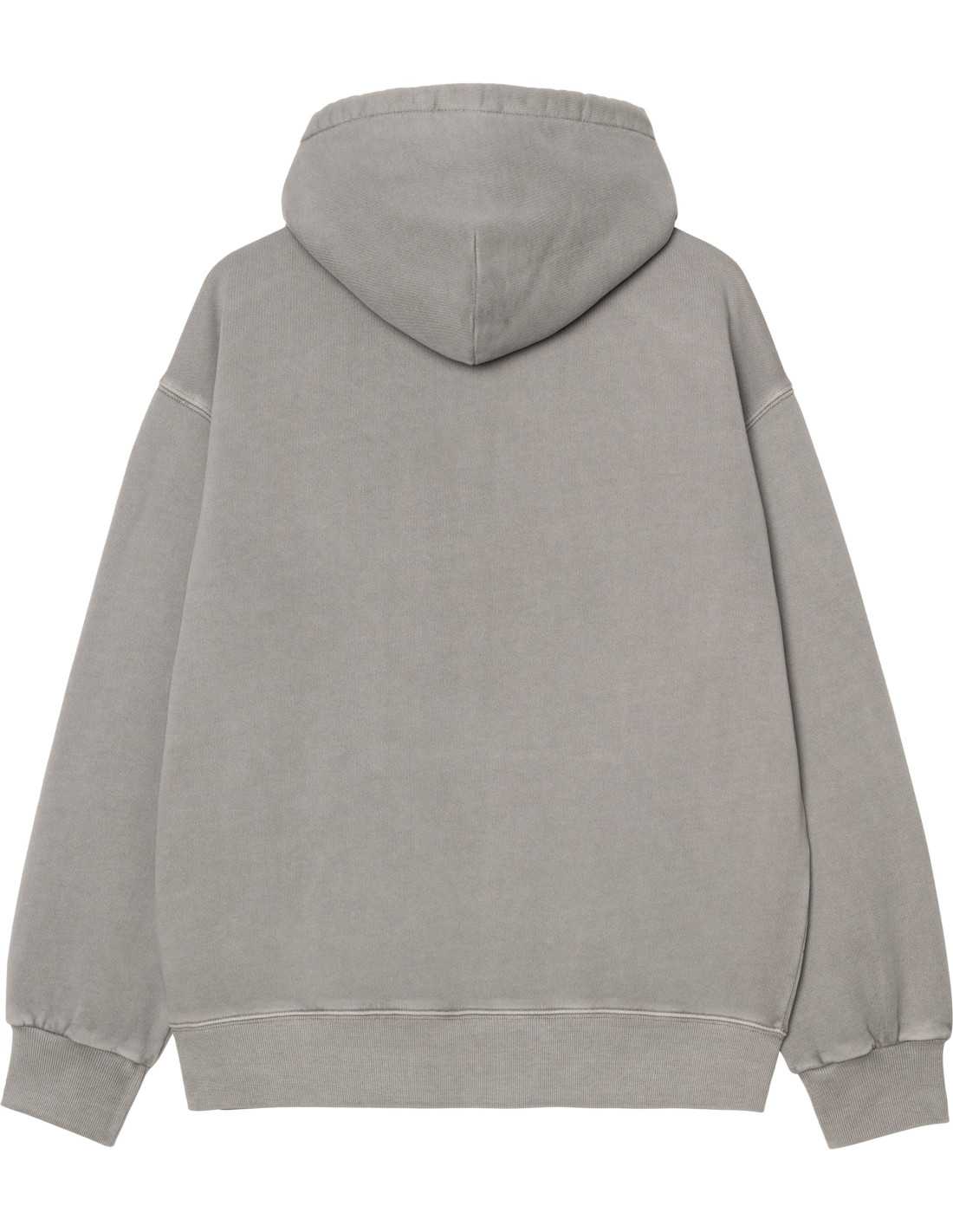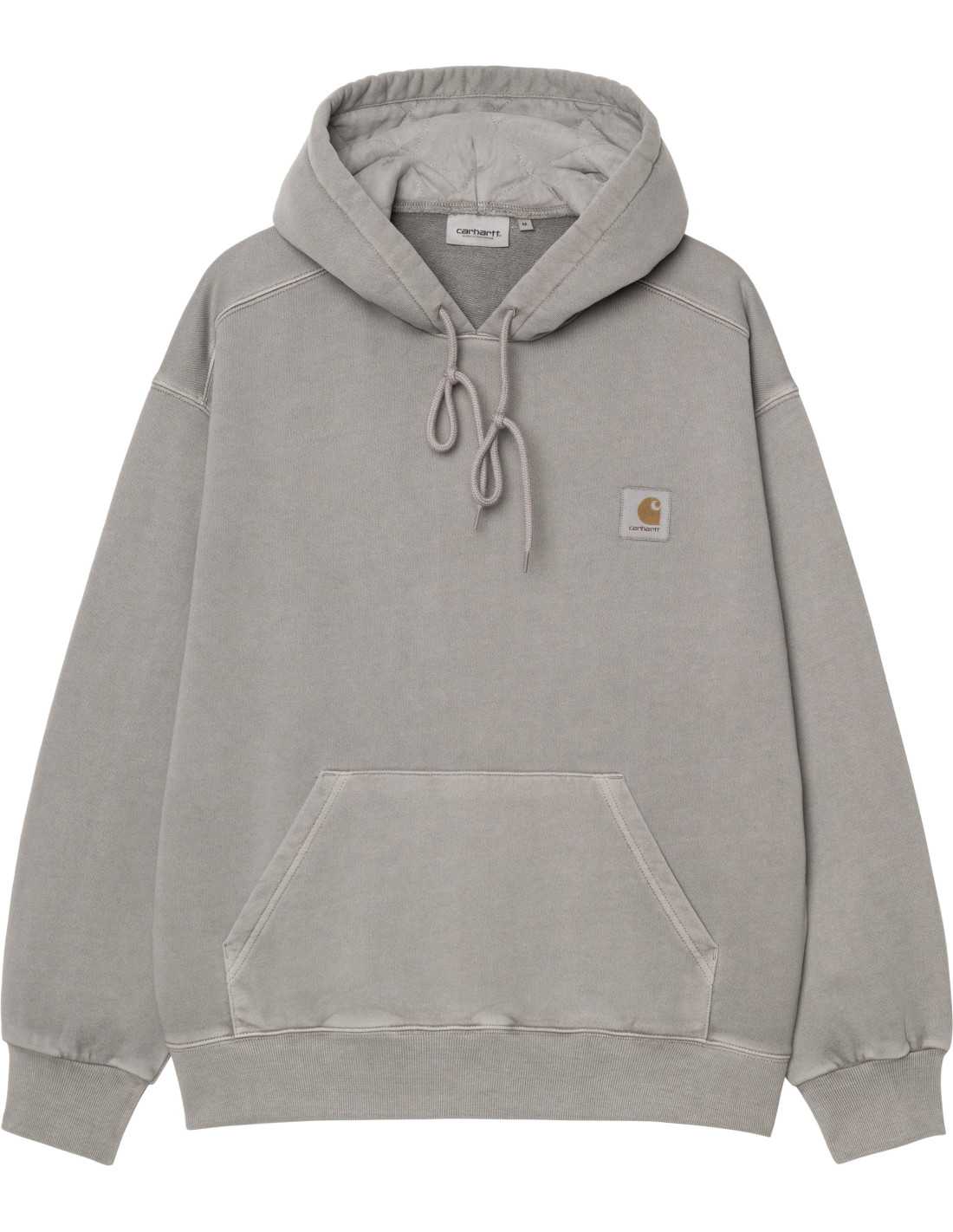 La dessudadora amb caputxa Hooded Nelson de Carhartt WIP està elaborada amb jersei de cotó sense raspallar de gran qualitat. Aquest model ha estat tenyit amb pigments per obtenir un color més intens. Incorpora una butxaca tipus cangur i una caputxa encoixinada amb folre i detalls en forma de diamant. Presenta un tall "balloon" que és més folgat i quadrat, amb espatlles caigudes i punys acanalats. El disseny es completa amb una clàssica etiqueta teixida de Carhartt WIP al pit esquerre.