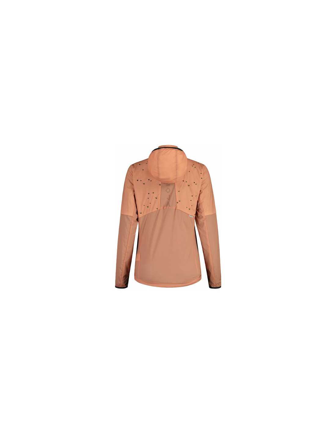 Jaqueta híbrida paravent i càlida per esquí de muntanya, nòrdic i exterior. La petita jaqueta híbrida empaquetable és ideal per als dies actius d'esports de muntanya: el material elàstic Moonstretch garanteix una bona llibertat de moviments, el farciment Primaloft Active BIO a la zona superior s'escalfa. La part davantera és resistent al vent, mentre que una lletra Maloja gravada amb làser a la part posterior proporciona una bona ventilació. Enquadernació reflectant als punys de les mànigues i la caputxa, cors volants brodats a la part superior de l'armilla, pegat Happy Mountain.