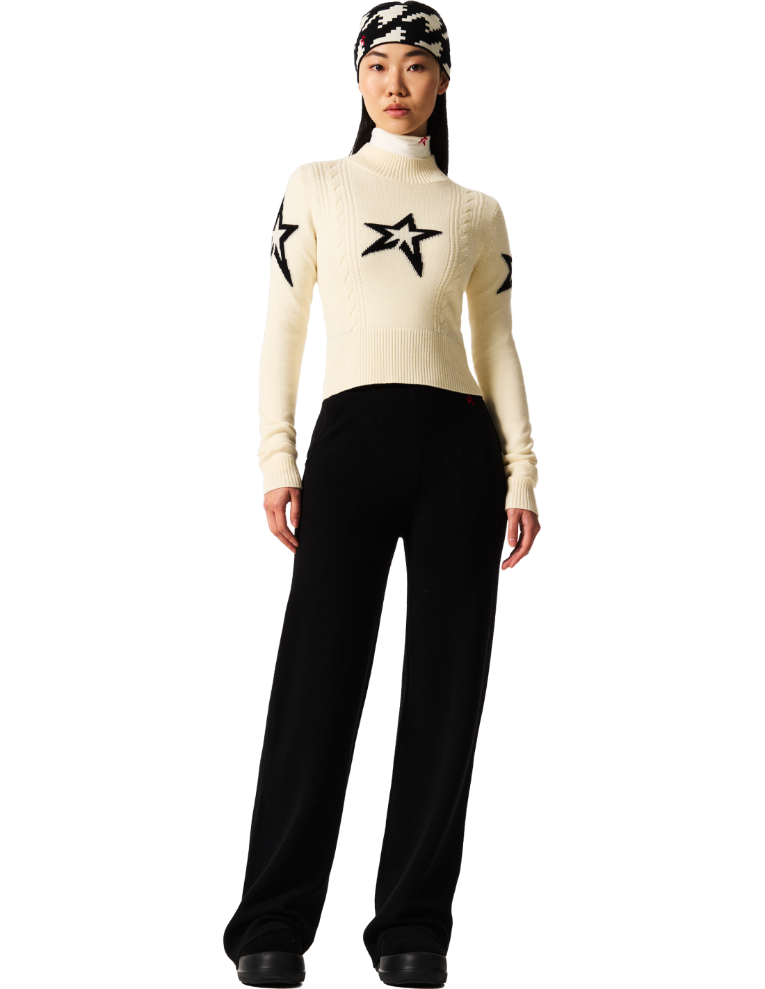 Elegant i modern, el Jersei de Punt Trenat presenta un disseny retallat amb una atrevida intarsia d'estrella i un detall direccional de punt trenat a la part davantera. Confeccionat amb un teixit de punt fi i suau, amb coll simulat i punys acanalats, ofereix calidesa i estil en una sola capa elegant. Combina'l amb pantalons d'esquí de cintura alta o fes-lo servir sota monos per a un look alpí polit.