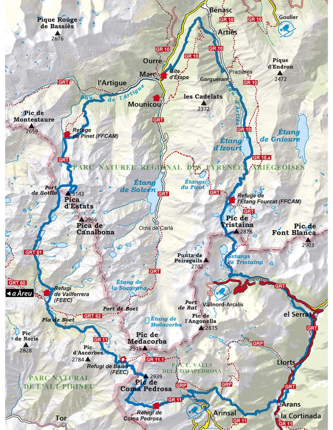 • Cims destacats: La Pica d'Estats, Pic de Coma Pedrosa, Pic de Tristaina, Pic de Medacorba