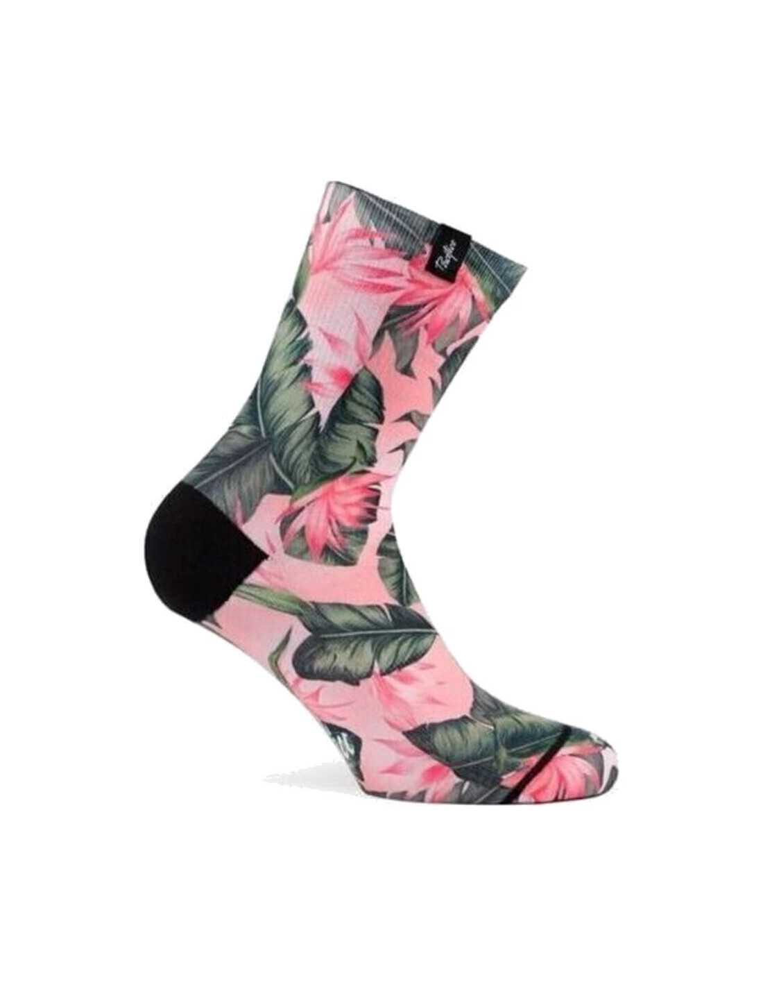 Boa Vista Pink Socks. Les fulles i les flors tropicals han esdevingut una necessitat a les nostres col·leccions. Al fons groc i rosa pastís a Boa Vista Pink creix deixa el gegant i el nostre ocell favorit del paradís. Aquests mitjons són l'estiu!