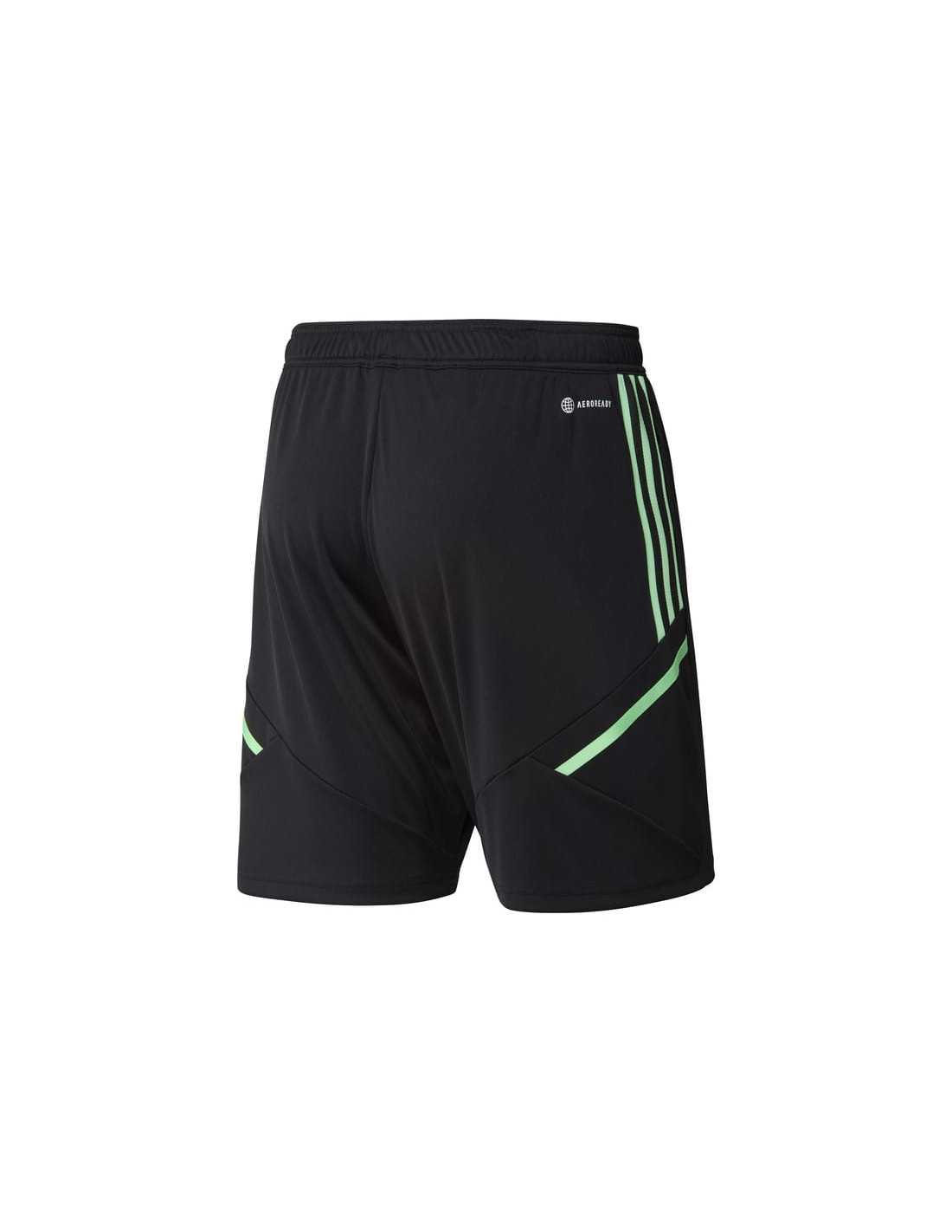 El pantaló curt d'entrenament Reial Madrid Condivo 22 d'Adidas està dissenyat per portar les teves sessions d'entrenament al següent nivell. Part d'una col·lecció especial del Reial Madrid, aquest pantaló curt destaca pel seu disseny en els colors negre i llima de la tercera equipació, juntament amb l'escut del club a la cama. Fabricat amb teixit transpirable AEROREADY, assegura que et mantinguis sec durant tota la sessió. A més, està confeccionat amb materials 100% reciclats, contribuint a la reducció de residus plàstics.