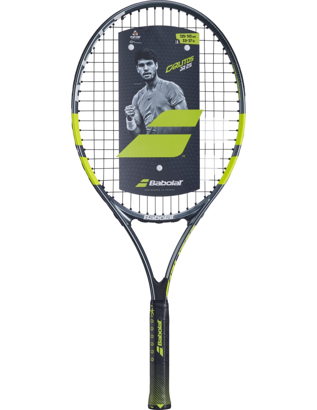 La raqueta Carlitos Junior 25 està dissenyada per a joves jugadors que mesuren entre 135 cm i 145 cm i que estan començant el seu camí en el tennis, inspirats pel seu heroi, Carlos Alcaraz. Aquesta raqueta és ideal per a principiants, combinant facilitat de maneig, potència i perdó, cosa que permet als nens desenvolupar confiança i coordinació. Amb un disseny atractiu inspirat en la raqueta del campió Carlos Alcaraz, la Carlitos Jr 25 és perfecta perquè els joves jugadors segueixin els passos del seu ídol mentre aprenen a jugar a tennis de manera senzilla.