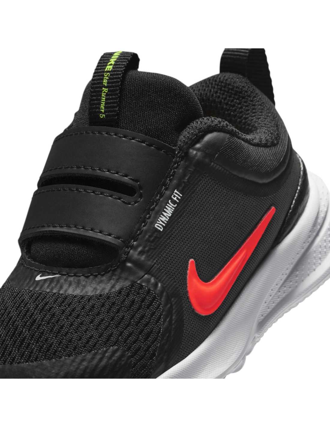 Les Nike Star Runner 5 estan dissenyades per oferir comoditat i suport als més petits durant les seves activitats diàries. Amb un disseny lleuger i transpirable, aquestes sabatilles ofereixen un ajust segur gràcies a les corretges de tancament per contacte regulables. L'amortiment elàstic i l'estabilitat proporcionada per la banda Dynamic Fit asseguren que cada pas sigui ferm i còmode, permetent als nens gaudir al màxim del seu temps de joc. La part superior de malla i teixits Knit proporciona una ventilació òptima, mentre que la puntera reforçada assegura una major durabilitat per suportar l'ús diari.