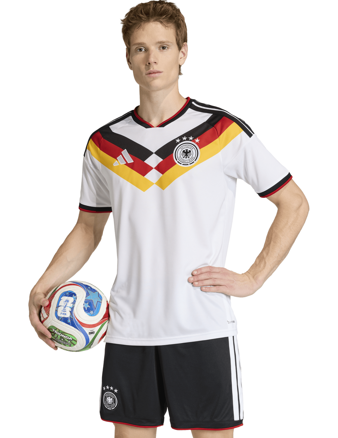 Al camp de futbol, la tradició s'uneix amb la innovació en aquesta samarreta de la primera equipació d'Alemanya 26. Dissenyada per ser la icona del futur, combina elements clàssics amb tecnologia d'avantguarda. La seva estructura de doble punt proporciona un tall que s'adapta al cos, mentre que el logotip d'adidas i l'escut del club brodats aporten autenticitat i orgull al conjunt. La tecnologia Climacool garanteix una temperatura òptima i una pell seca, permetent un rendiment sense distraccions. El coll elegant EQT i el material d'assecat ràpid asseguren comoditat durant tot el partit.