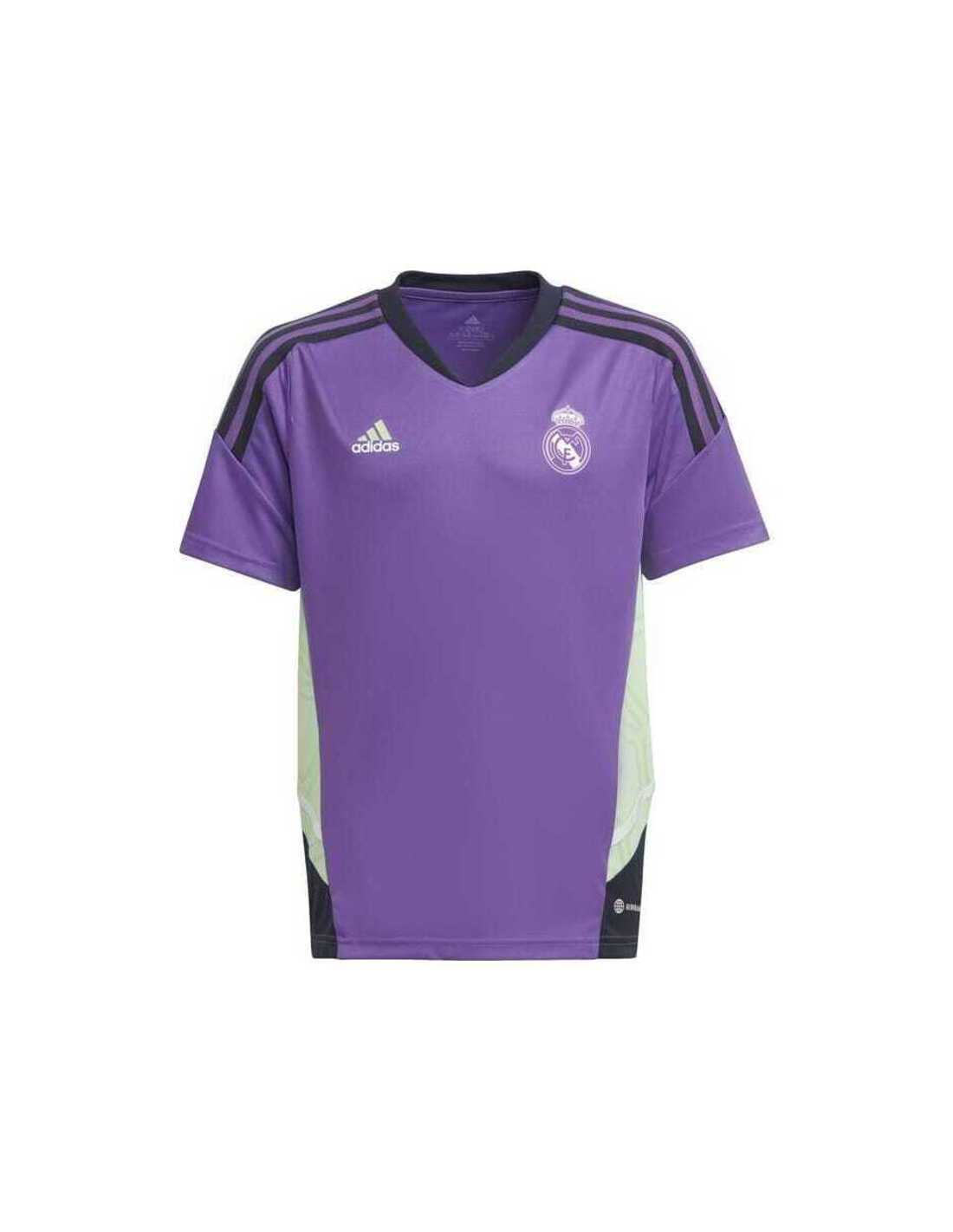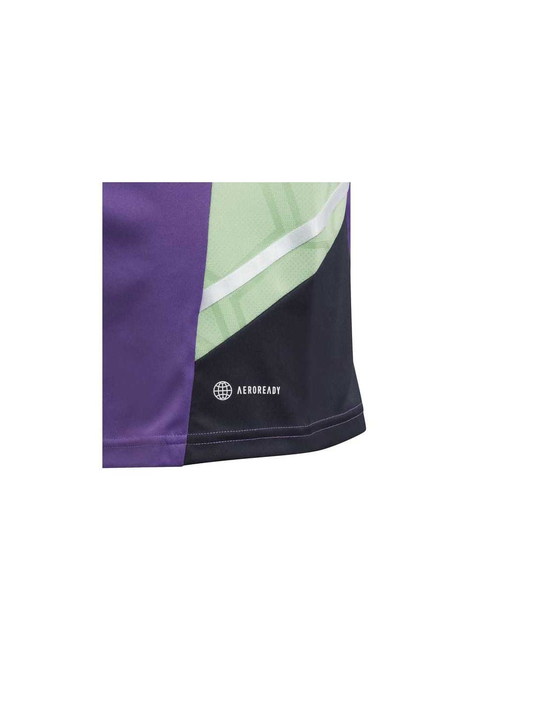 La samarreta d'entrenament Real Madrid Condivo 22 està dissenyada per als joves atletes que busquen millorar el seu rendiment. Inspirada en la dedicació i l'esforç del club lluny del Santiago Bernabéu, aquesta peça ofereix comoditat i frescor a través de la seva tecnologia transpirable AEROREADY, mantenint la pell seca en els moments més exigents. Confeccionada completament amb materials reciclats, reflecteix el compromís amb el medi ambient, mentre que l'escut del Real Madrid recorda la importància de mantenir-se fidel als objectius.