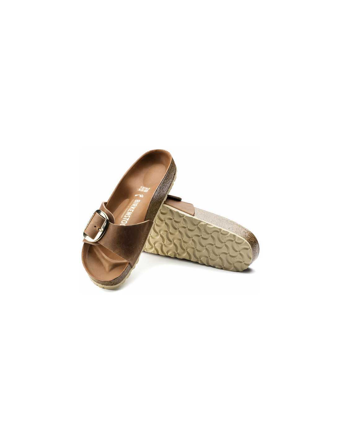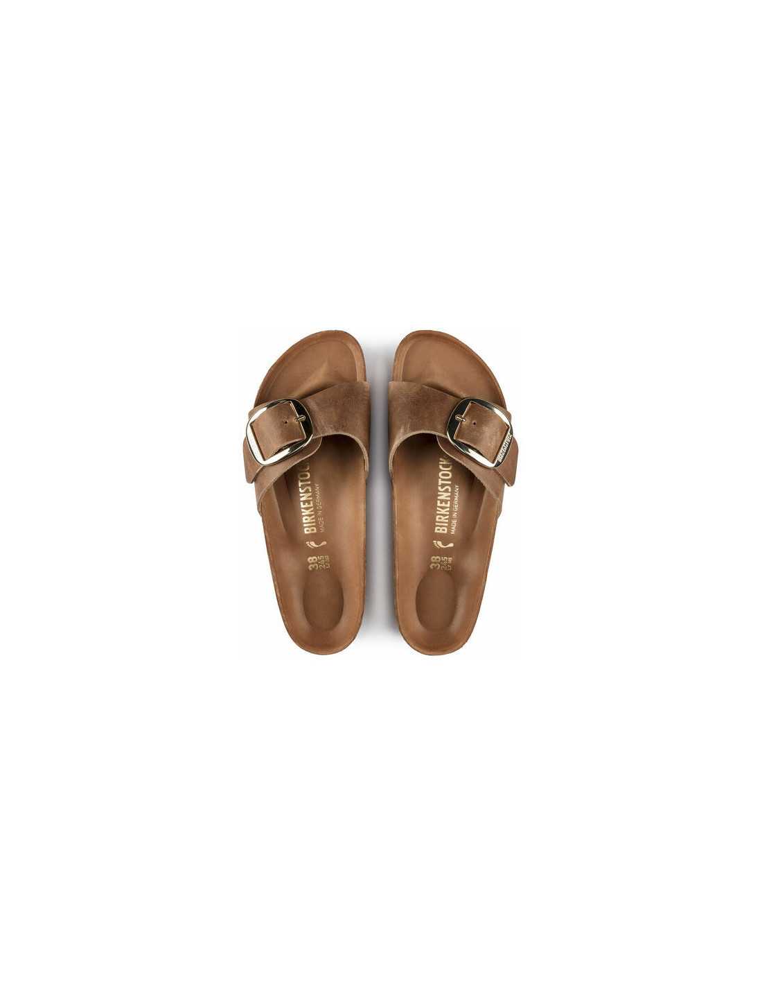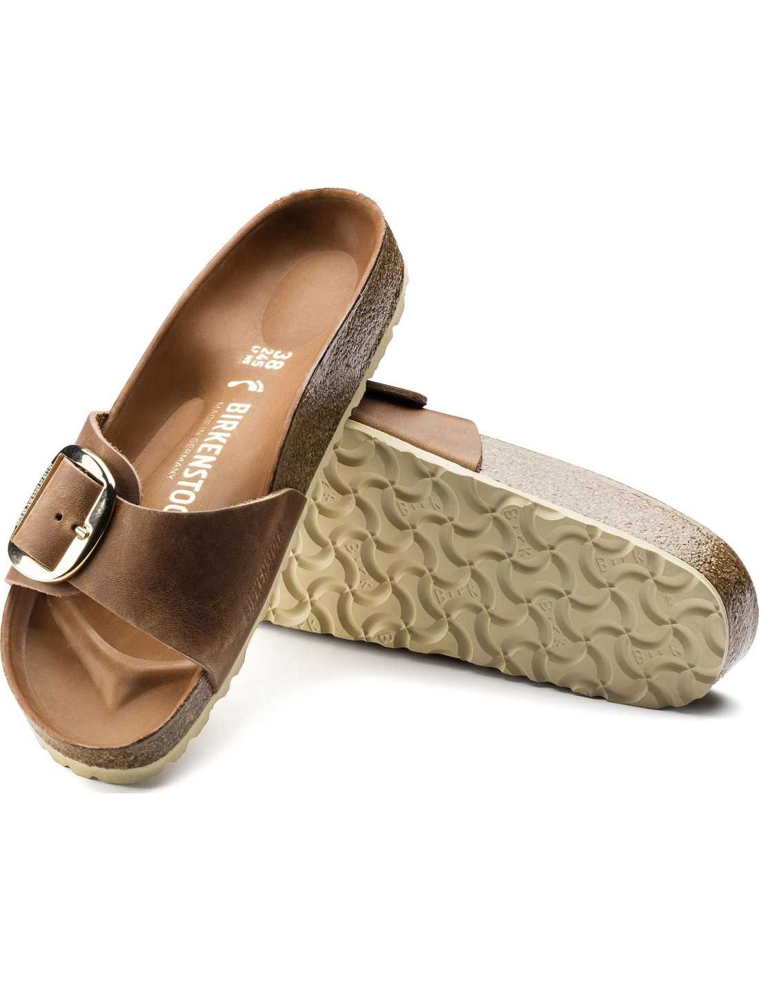 Die BIRKENSTOCK Madrid Sandalen sind ein echter Klassiker, der die Modewelt mit seinem minimalistischen Design fasziniert. Die Big Buckle Version präsentiert eine große, elegante Schnalle, ein auffälliges Detail an dieser schlicht gestalteten Sandale. Die Beschichtung des halb-exquisiten Fußbetts ist mit weichem Glattleder überzogen, das farblich auf den Schuh abgestimmt ist. Das Obermaterial besteht aus extra dickem, geöltem Nubukleder mit offener Kantenverarbeitung.