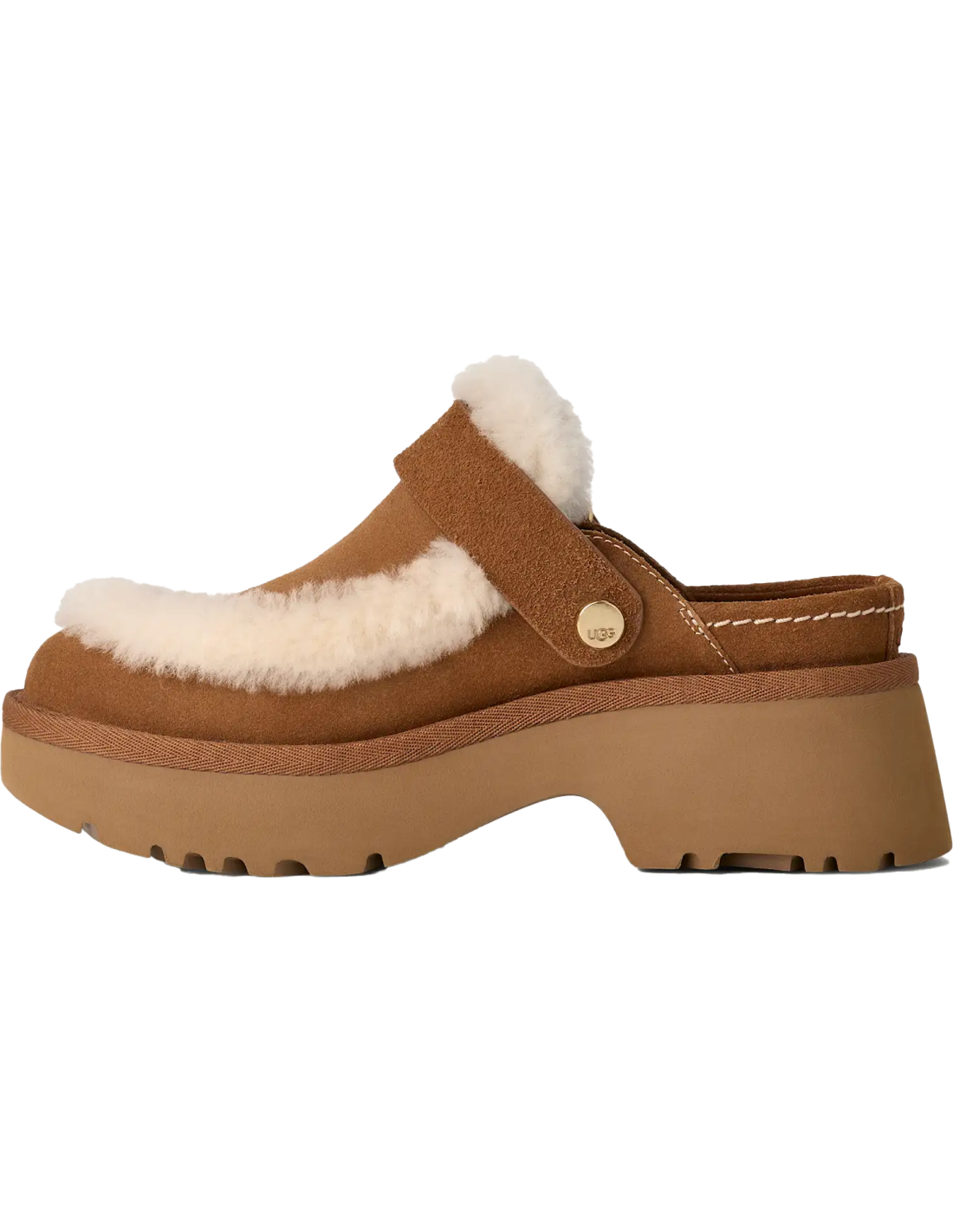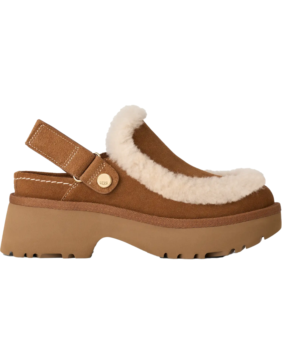 Die Esmee Clogs von UGG repräsentieren die Weiterentwicklung des Erbes der Marke und kombinieren Luxus und Komfort in einem modernen Design. Gefertigt aus echtem Wildleder-Obermaterial, zeichnen sich diese Clogs durch ihre luxuriösen sichtbaren Nähte aus Schafsfell aus, die einen Hauch von Raffinesse verleihen. Der Komfort ist dank der Lammfell-Innensohle und des verstellbaren Fersenriemens, der es ermöglicht, sie als geschlossene oder offene Clogs zu tragen, gewährleistet. Der 5 cm hohe Absatz aus ultraleichtem EVA bietet Halt, ohne an Leichtigkeit einzubüßen. Perfekt für diejenigen, die Stil und Komfort in einem Schuh suchen.