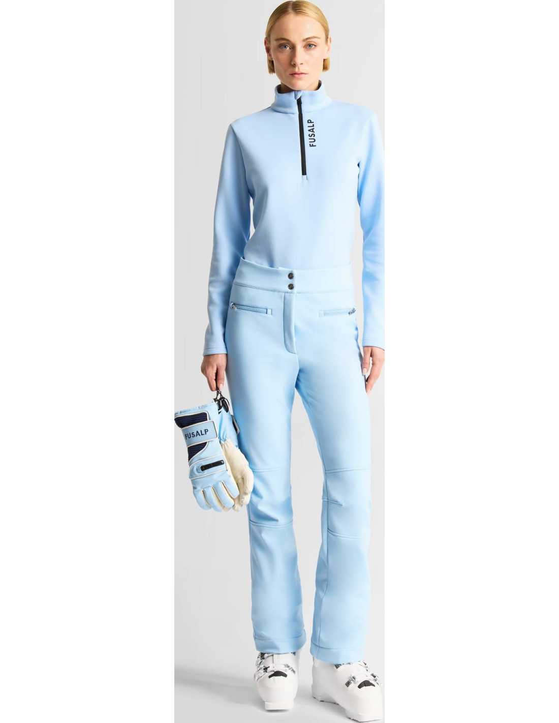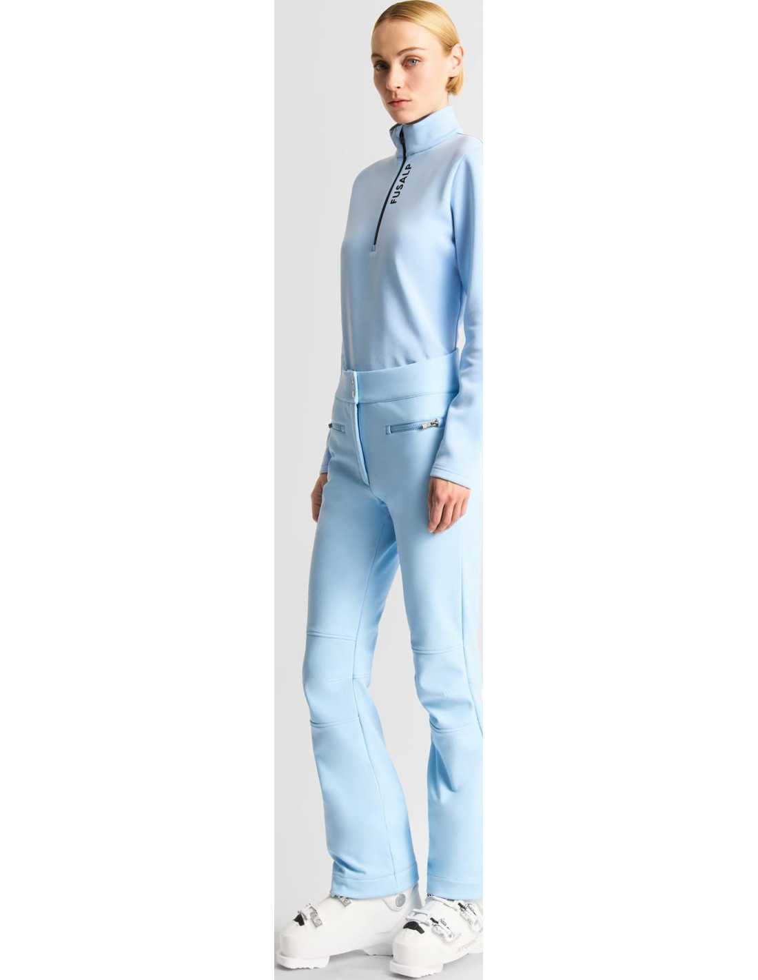 Die Softshell-Hose Diana von FUSALP wurde entwickelt, um maximalen Komfort und Leistung auf der Skipiste zu bieten. Gefertigt aus einem verbundenen, vollständig elastischen Fleecegewebe, verfügt diese Hose über eine von FUSALP zugelassene Membran, die hervorragenden Schutz gegen Wind und Feuchtigkeit bietet. Ihr Design umfasst vorgeformte Knie für mehr Bewegungsfreiheit und Hüfttaschen mit Reißverschluss für eine sichere Aufbewahrung. Zudem sind Schneegamaschen mit rutschfestem Gummi am unteren Beinabschluss integriert, um einen perfekten Sitz über den Skischuhen zu gewährleisten.