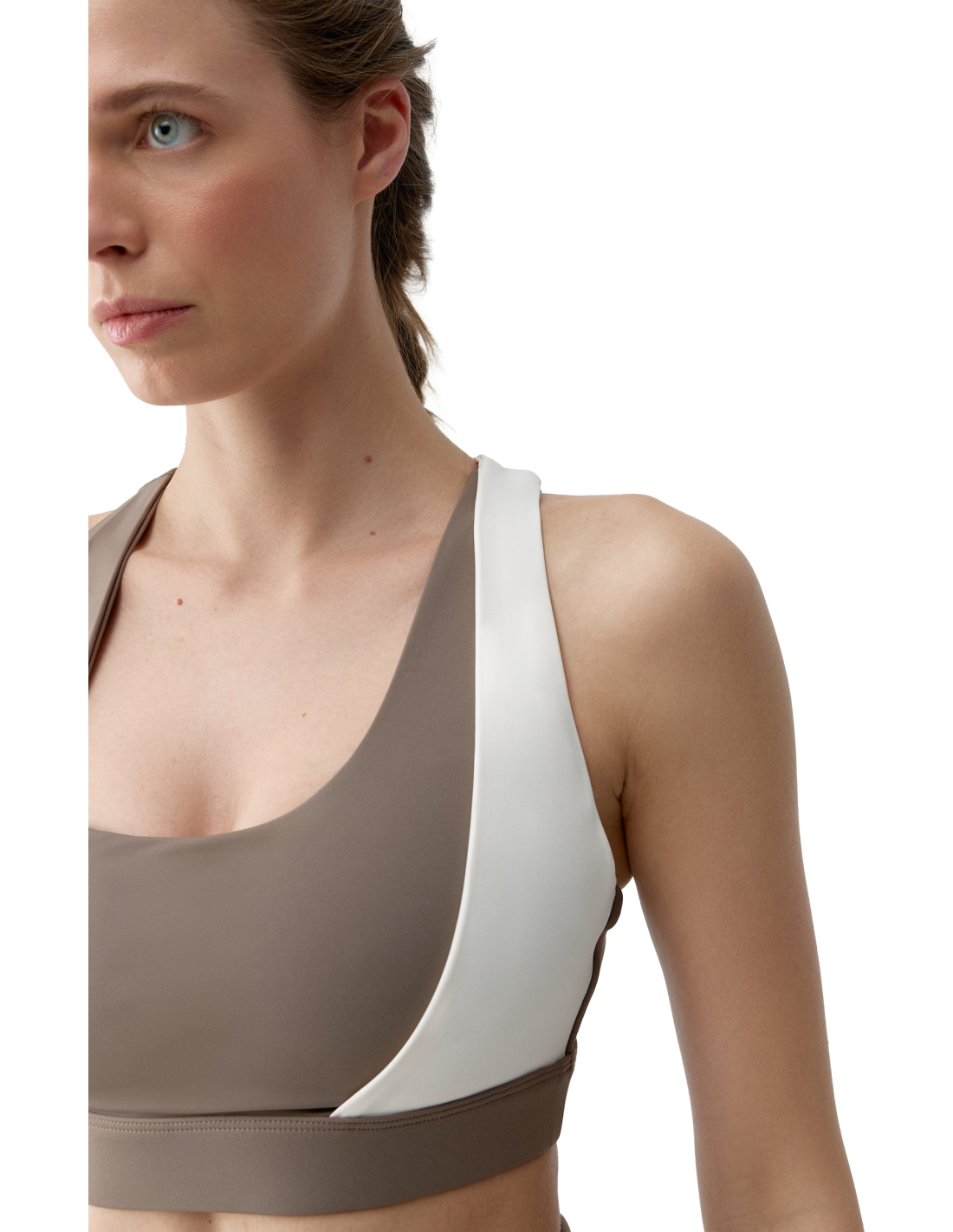 The BORN LIVING YOGA Cleo Top for women is an exquisite blend of style and functionality, designed to elevate your yoga and fitness sessions. This two-tone sports top showcases a chic asymmetrical design, ensuring you look elegant while maintaining focus on your activity. It provides medium-high support with its comfortable crossover straps, making it ideal for various workouts. Constructed with "Shape_Tech" fabric, it offers a smooth fit with the added convenience of easily removable cups. The mesh fabric interior enhances breathability and keeps the top lightweight, ensuring comfort throughout your exercise routines.