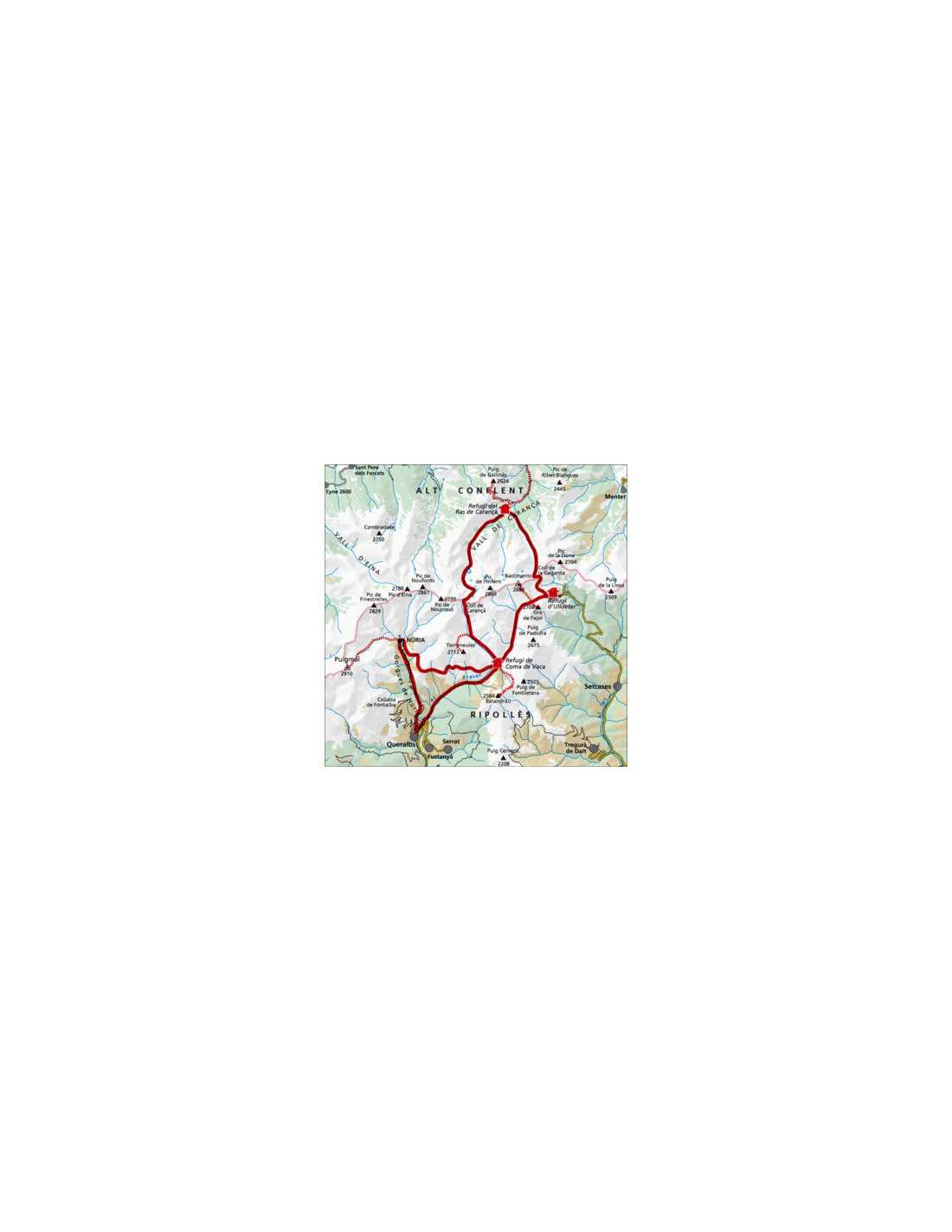 The Three Refuges Traverse is an invitation to discover on foot the unforgettable landscapes of the Eastern Pyrenees. This map, with a scale of 1:25,000, offers a detailed guide of the route, allowing hikers to enjoy the richness of wildlife, precious flowers, spectacular gorges, solitary lakes, lush forests, and mighty rivers. At the end of each stage, adventurers can rest in guarded refuges, ready to regain strength for the next day. This challenging traverse includes ascents and descents exceeding 3000 meters of elevation gain, but for the most determined, the experience can be extended by reaching iconic peaks such as Balandrau, Bastiments, Gra de Fajol, Gallinàs, Torreneules, and Puigmal, accumulating more than 6000 meters of total elevation gain.