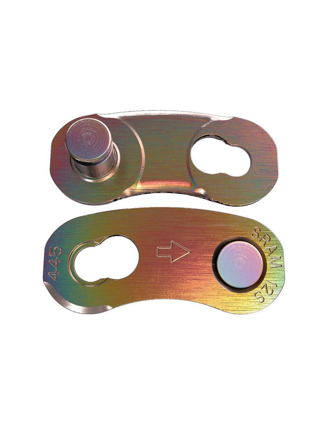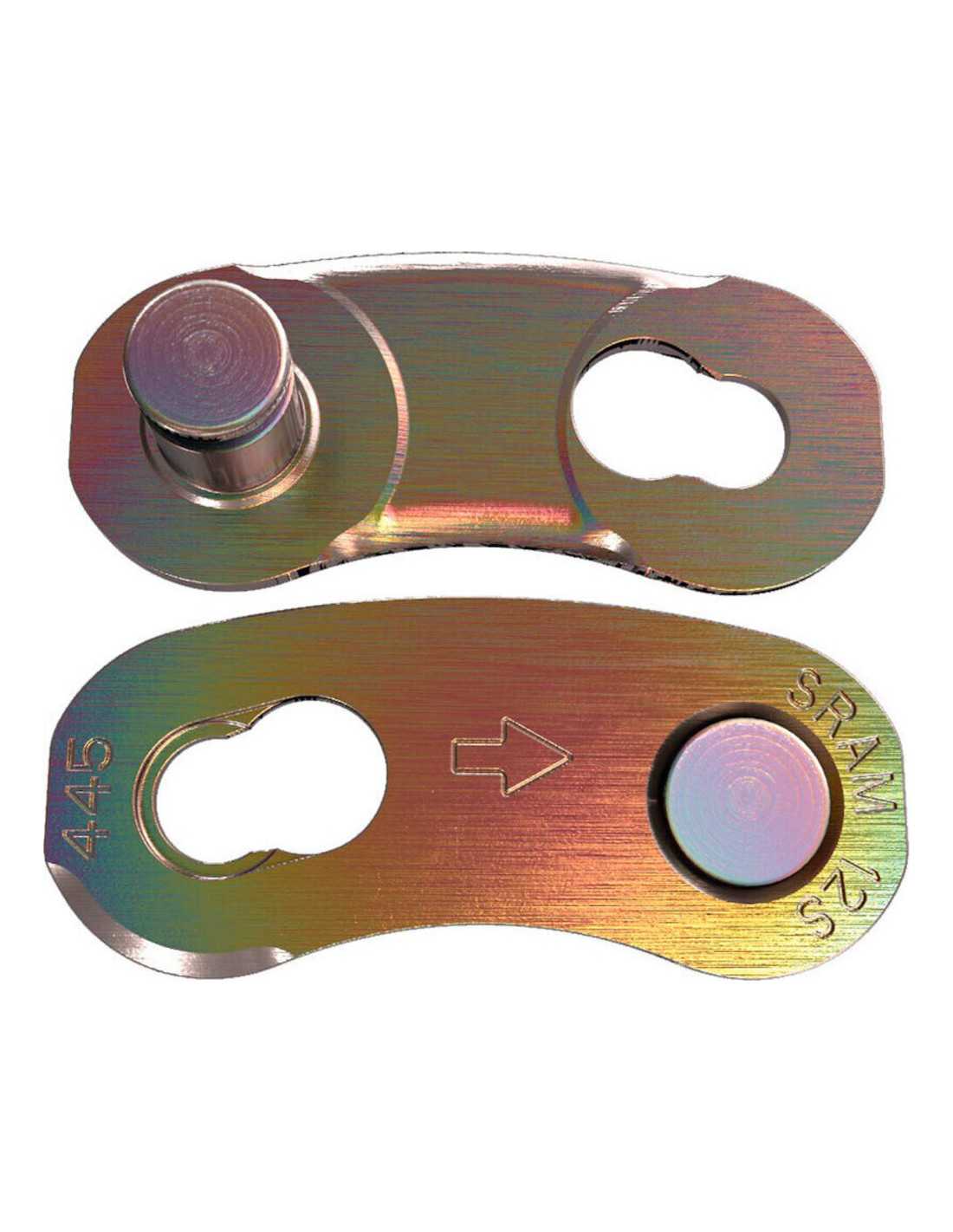 The SRAM PowerLock Eagle Chain Connector is designed to provide a simple and secure solution for connecting 12-speed bicycle chains. This package includes four PowerLock link units, each with a Rainbow finish that adds a touch of style to any bike. Ideal for cyclists looking for quick, tool-free installation, this connector ensures reliable performance, especially in demanding conditions. Compatible with Eagle chains, this product is essential for keeping your bike chain in perfect condition.