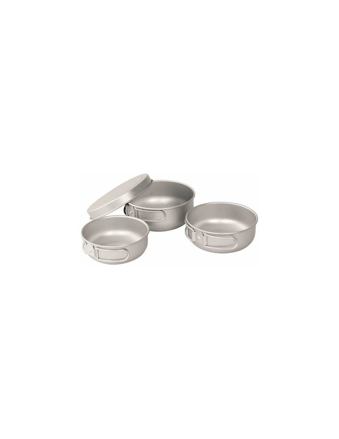 - Three pots packed into each other for very small pack size