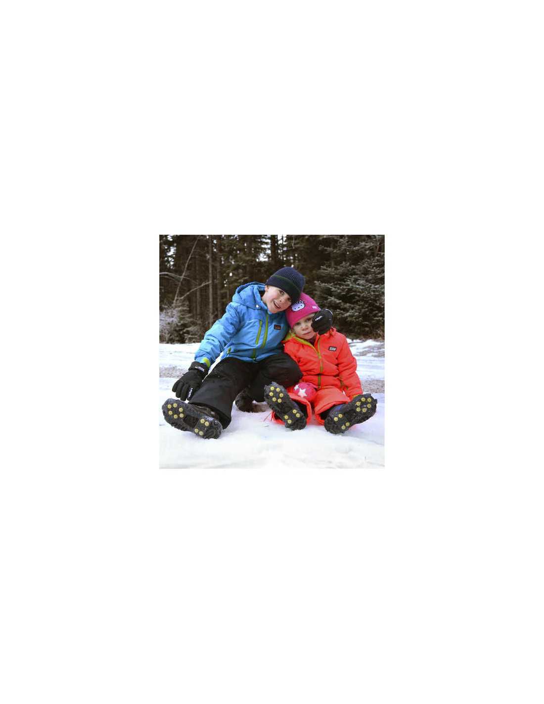 Quick fit shoe spikes. Non-slip devices for footwear, to prevent the risk of accidental falls and slips on roads and icy terrain. Quick fit and optimal adhesion on any footwear and walk safe thanks to 10 steel spikes. The perfect companion for any eventuality. Practical and waterproof polyester bag.