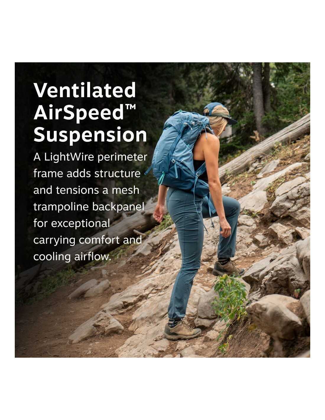 The Sirrus 36 backpack is the ideal companion for those looking to expand their hiking adventures to more demanding and longer terrains. Designed with an AirSpeed suspension system that offers excellent ventilation, this backpack ensures comfort during long hours of exploration, regardless of the weather. Its top-loading design with a fixed lid makes gear preparation easy, while its medium capacity is perfect for overnight stays with the essentials. Additionally, it is made with 100% recycled materials, reflecting a commitment to sustainability.