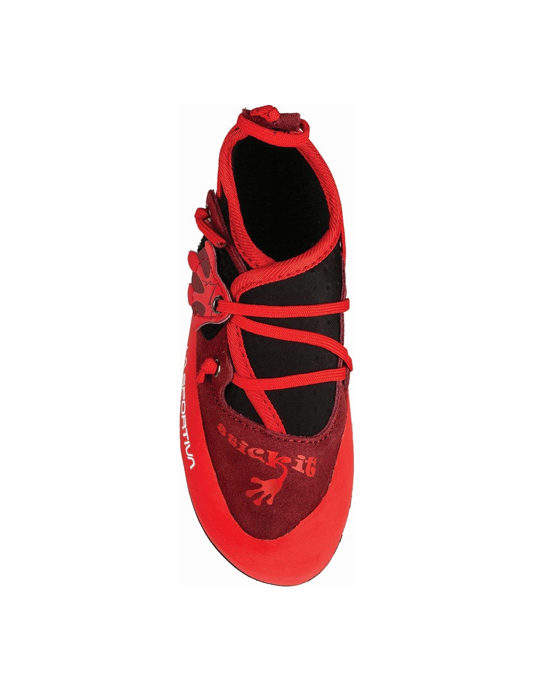 The La Sportiva Stickit climbing shoes for kids are designed to offer comfort and a perfect fit for the little ones. These shoes stand out for their innovative lacing system with hook and loop closure, which facilitates quick and easy wearing, allowing for a customized fit that adapts to the child's growing foot. Thanks to their adaptable design, these shoes can even be used one size larger than the initial size, extending their usefulness. They are equipped with a FriXion RS sole and a protective toe rand, as well as a small breathable and elastic gaiter, making them perfect for young climbers.