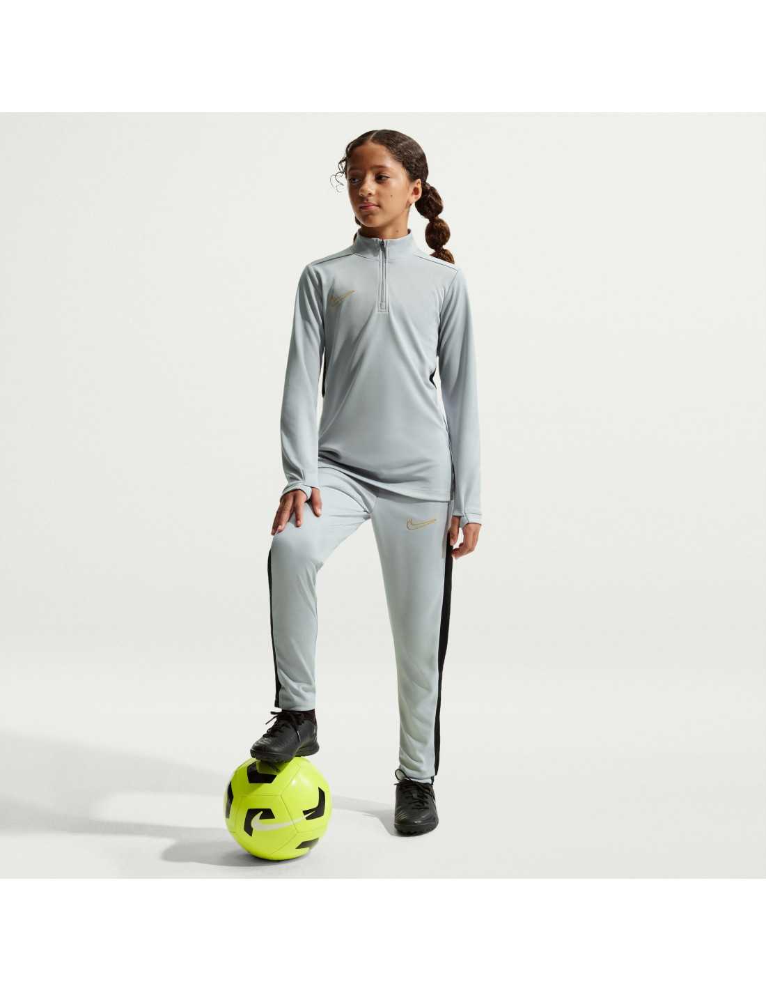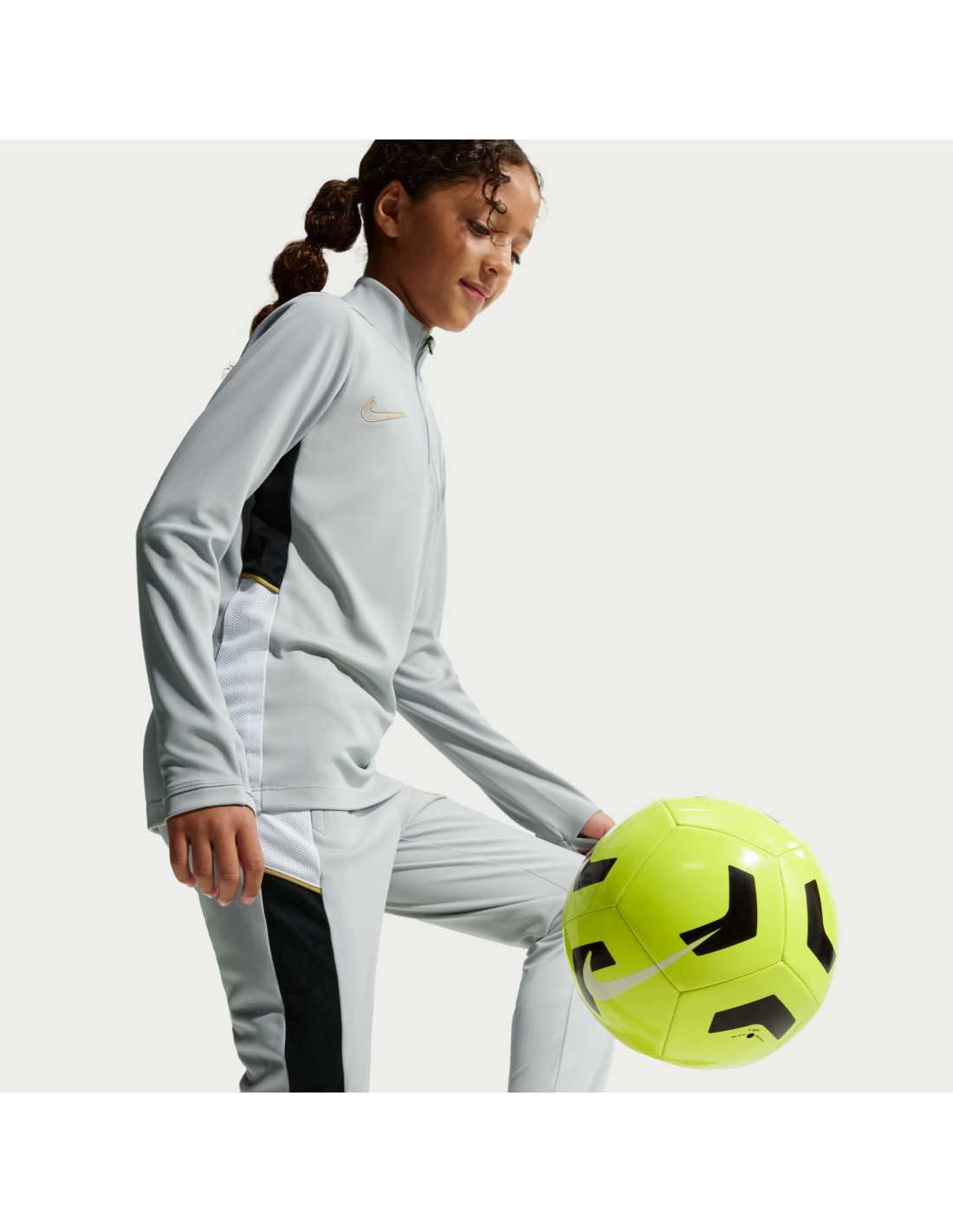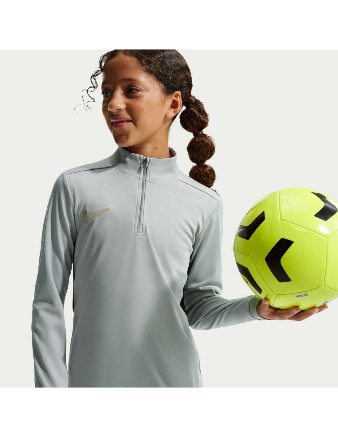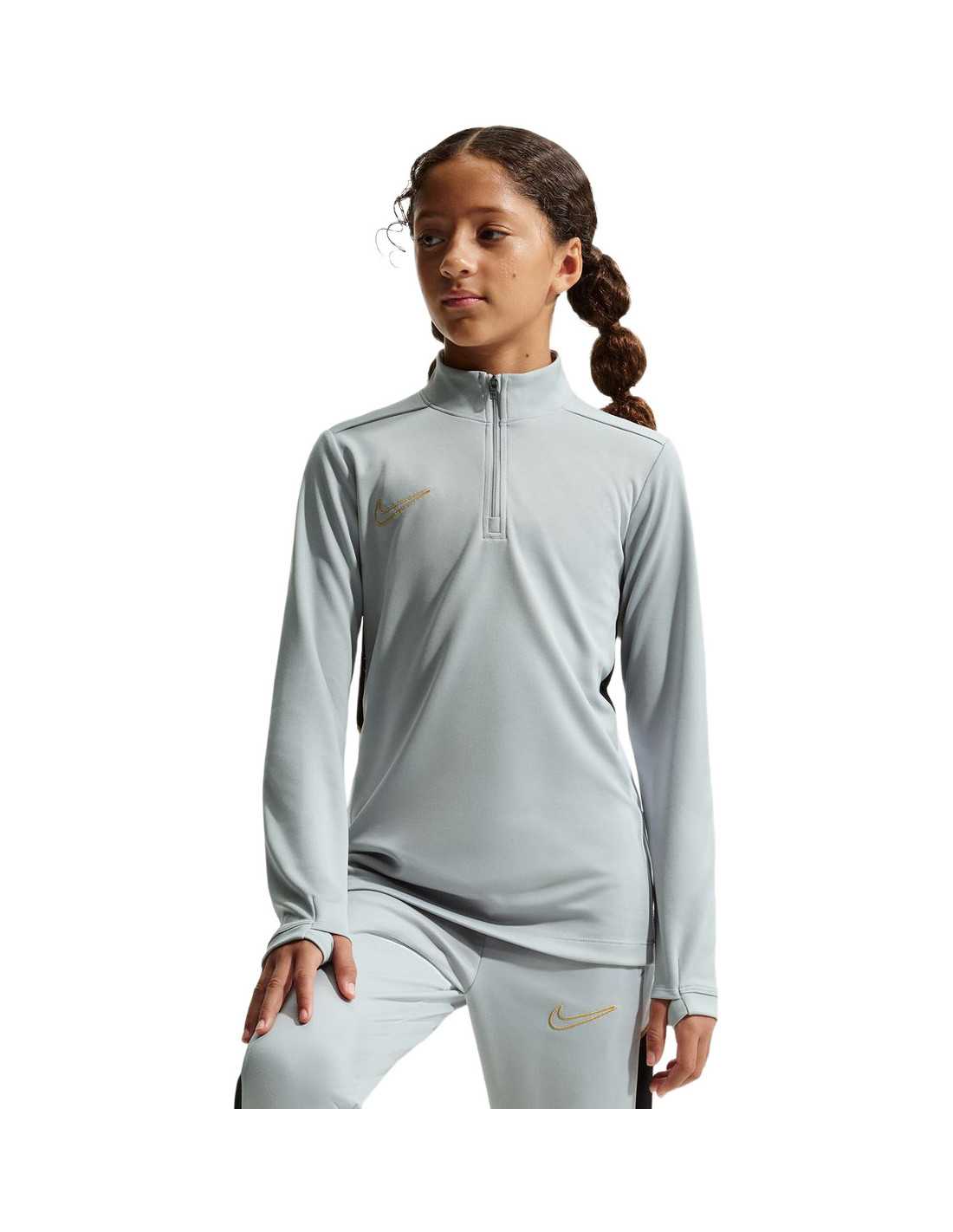 The Nike Academy training shirt is designed for kids to take their skills to the highest level. Made with soft Knit fabric and Nike's advanced Dri-FIT technology, which wicks away sweat, this shirt ensures breathability and comfort during practice. Innovative features like thumb holes allow for greater coverage and ensure the sleeves stay in place while moving. Additionally, the mesh side panels optimize ventilation, and the 1/4 zip design provides extra protection when closed and increased ventilation when open.