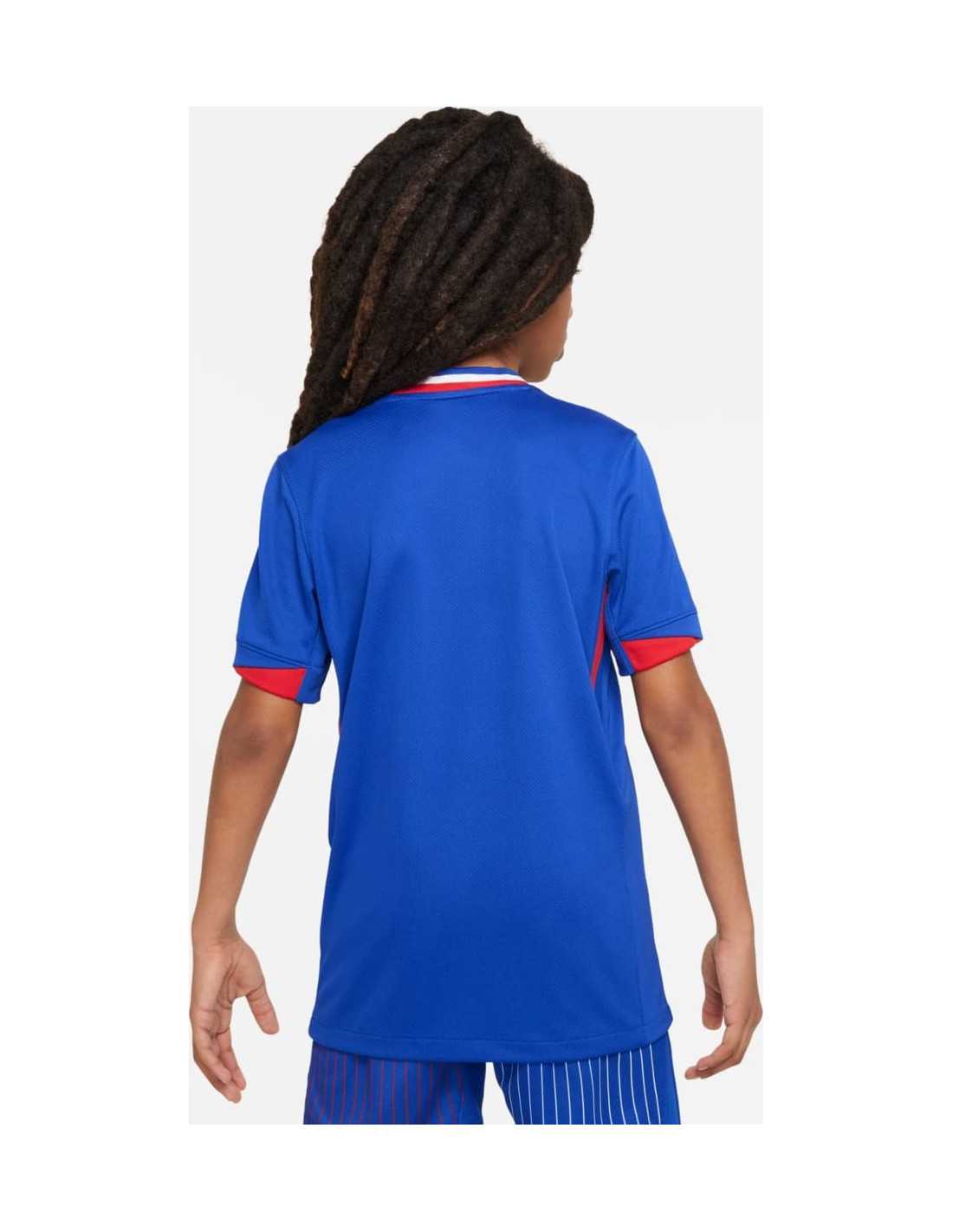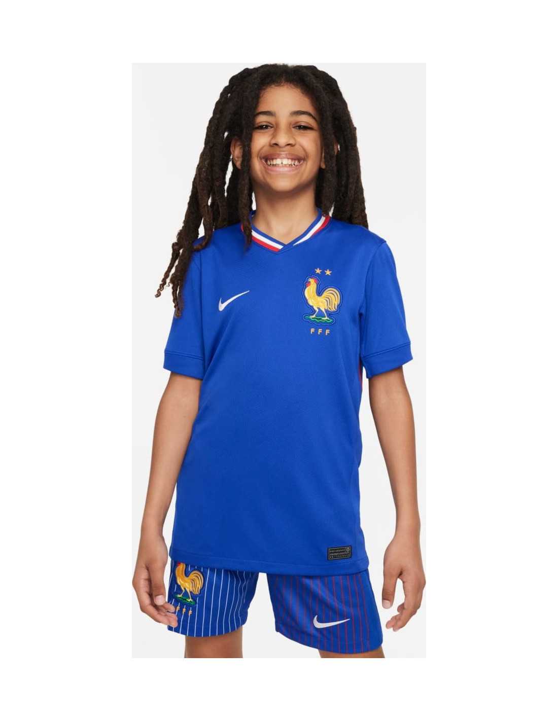 The FFF 2024/25 home kit is inspired by the classic shirts of the French national team from the 1960s and pays tribute to the country's rich cultural diversity. The oversized rooster on the chest and the ribbing with the French tricolor flag clearly show which country this t-shirt represents.