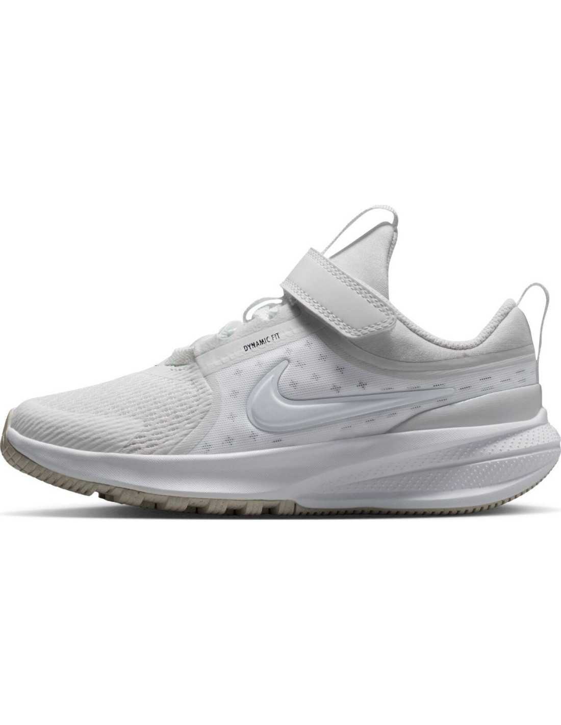The NIKE Star Runner 5 Kids' Running Shoes are perfect for the little ones who dream of running and playing without limits. Designed to maximize playtime, these shoes offer lightness and breathability thanks to their mesh and ventilated Knit fabrics. With a secure fit provided by a Dynamic Fit band and soft cushioning with every step, these shoes ensure comfort and stability. Additionally, their rubber outsole with lugs provides extra grip where it's needed most.