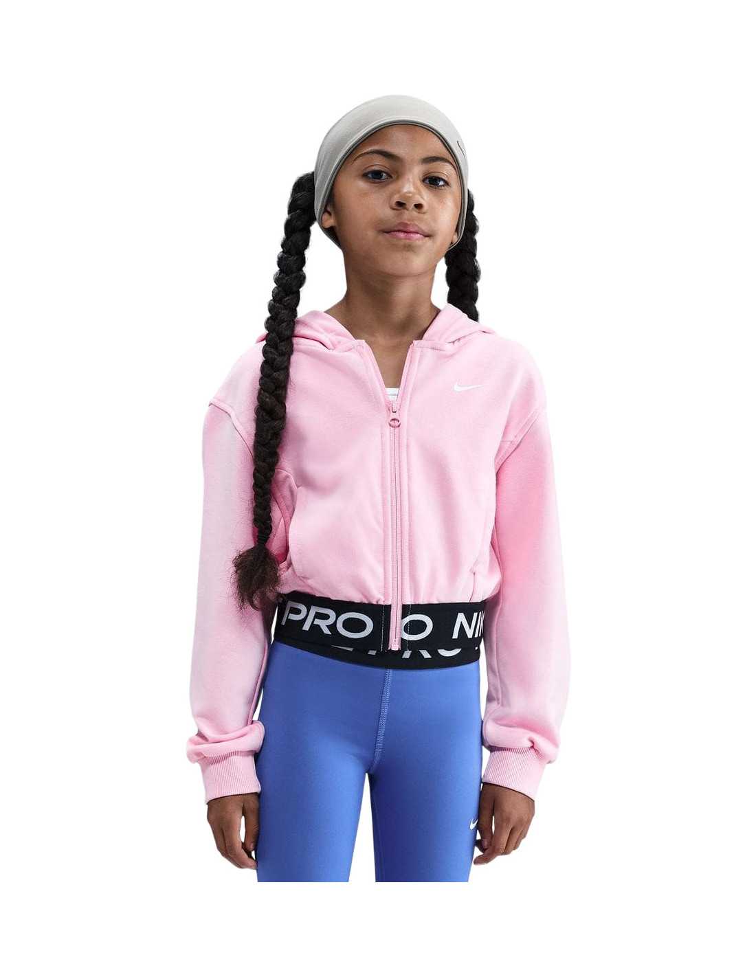The Nike Pro Fleece hoodie takes comfort to the next level with breathable French Terry fabric and sweat-wicking Dri-FIT technology. Its professional design combines safety and style, incorporating eye-catching details into any outfit. The slightly cropped design and classic fit allow for great freedom of movement, while the wide jacquard hem adds a traditional Nike Pro touch. Perfect for performance, this hoodie is an excellent addition to any active girl's wardrobe.