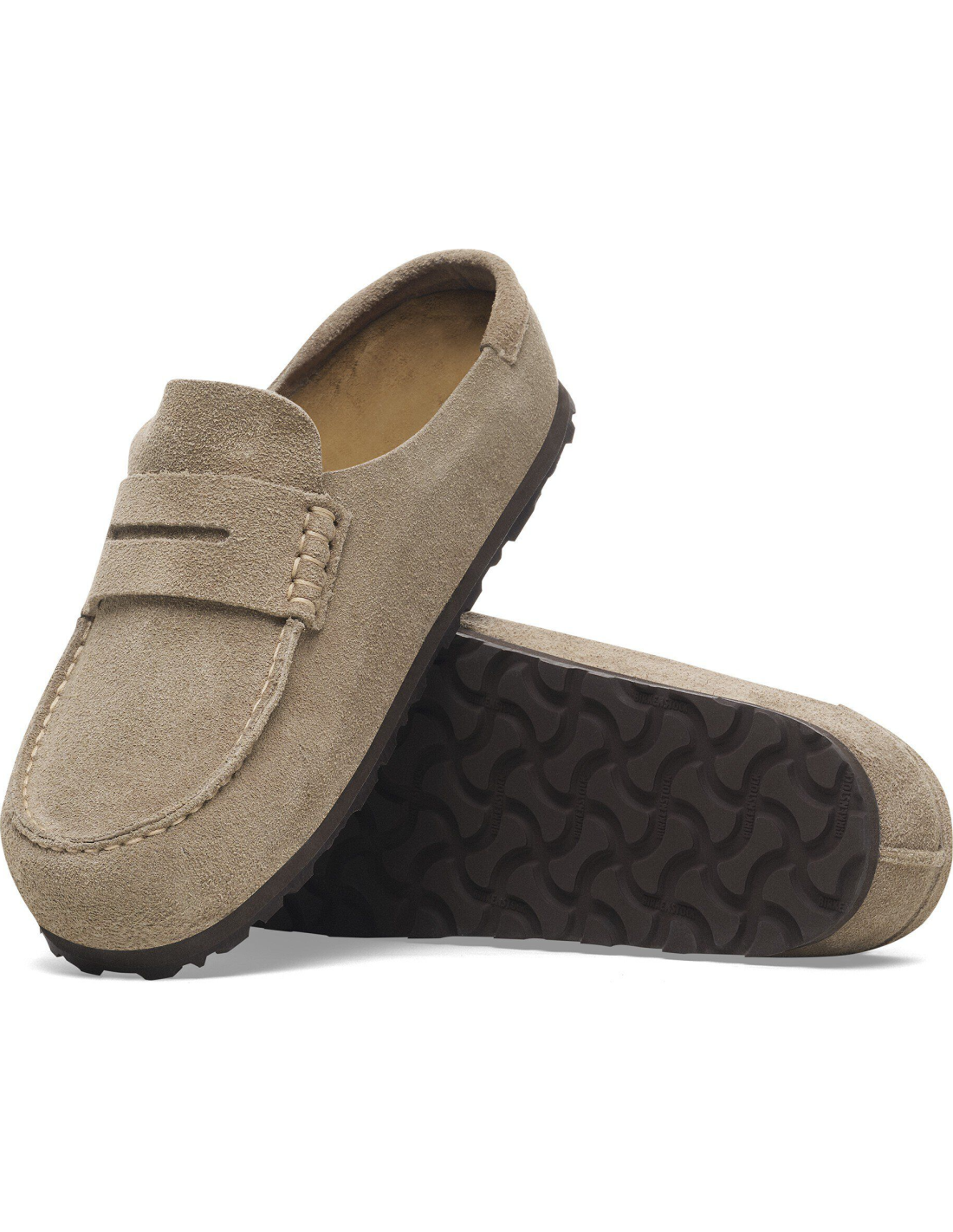 The Naples Wrapped clogs from BIRKENSTOCK combine the classic moccasin design with modern comfort. Made with a soft suede upper material, these clogs naturally adapt to the foot, offering a glove-like wearing experience. The EVA cushioning and genuine rubber composite sole provide secure and comfortable support, ideal for daily use. The striking stitching and the anatomical cork and latex footbed ensure that these clogs not only offer a distinctive style but also superior well-being.