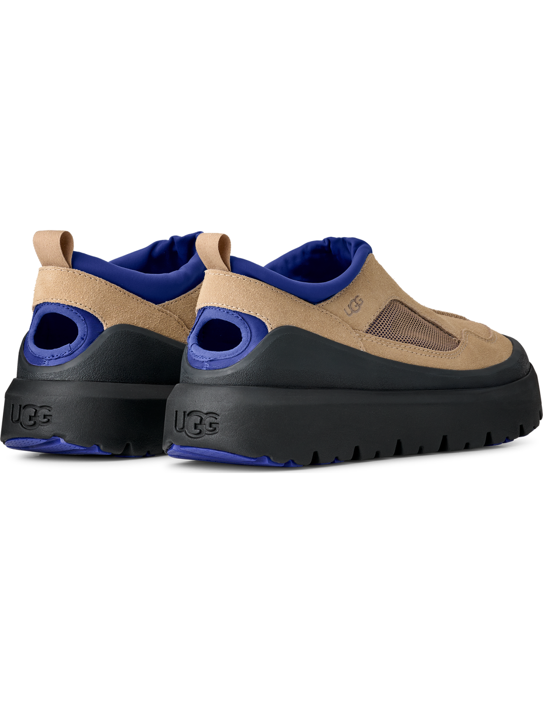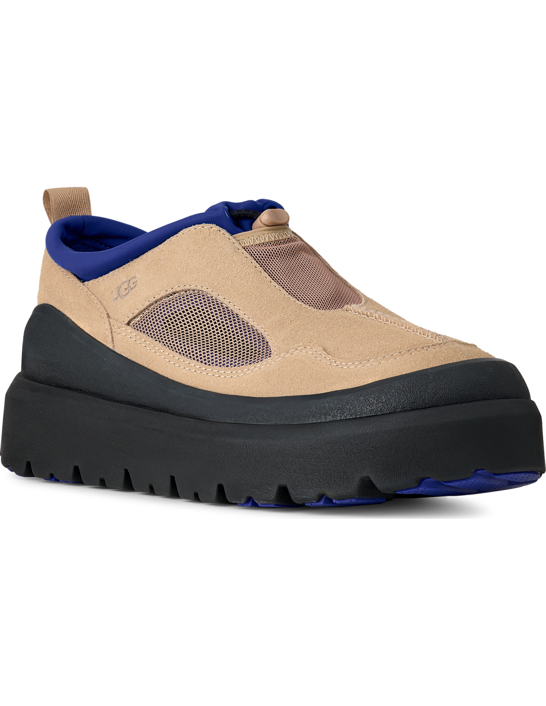 The UGG M HERITAGE UTILITY AXOID Men's Sneaker is designed for versatility and function, seamlessly blending the attributes of a sneaker and a sandal. This footwear is packed with practical features, from its Spider Rubber® traction pods that ensure stability, to its breathable mesh panels and durable suede upper with mudguard. The lightweight sugarcane EVA outsole enhances comfort, making it perfect for city strolls, weekend getaways, or transitioning from day to night effortlessly.