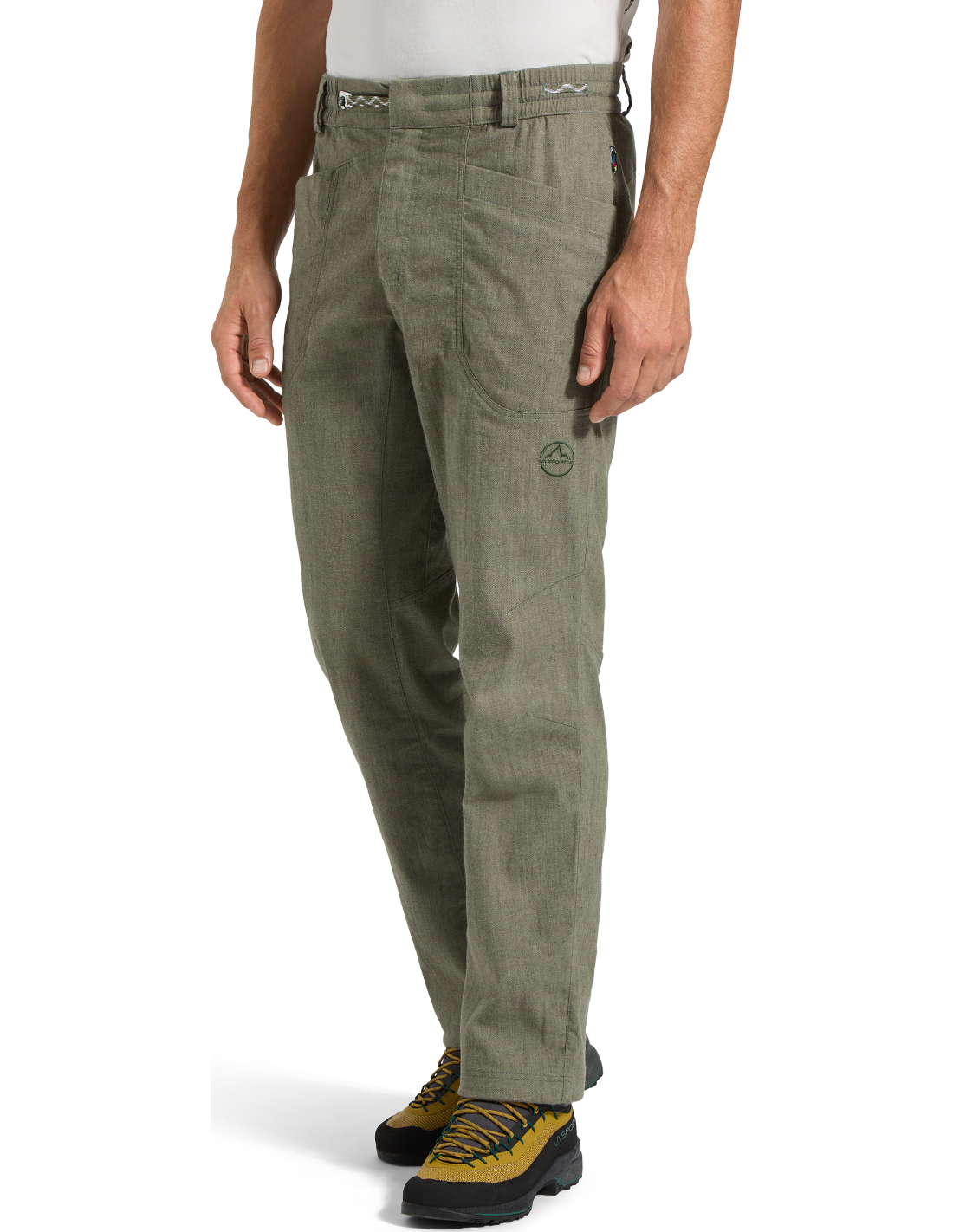 The La Sportiva Sierra Rock Pant M is designed for dedicated climbers who value comfort and functionality during a full day at the crag. Made with a blend of recycled cotton, hemp, and elastane, these pants are lightweight yet durable. The fabric provides excellent breathability and stretch, ensuring ease of movement. With features like an adjustable waistband, multiple pockets, and an integrated gusset, these pants offer practicality and comfort for climbing enthusiasts.