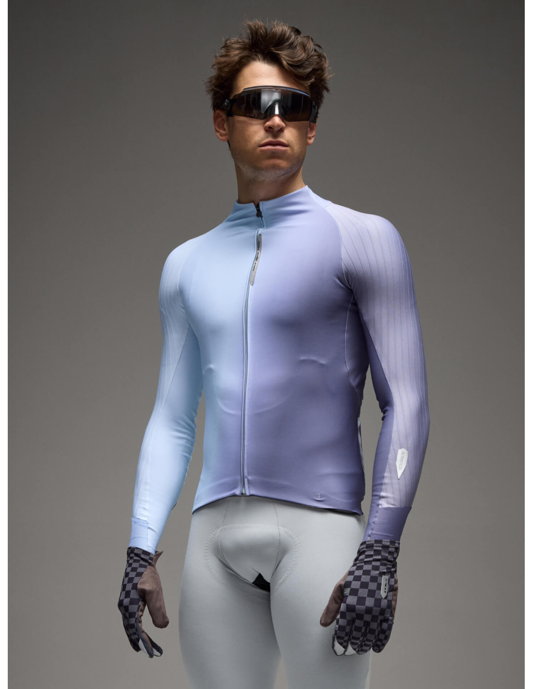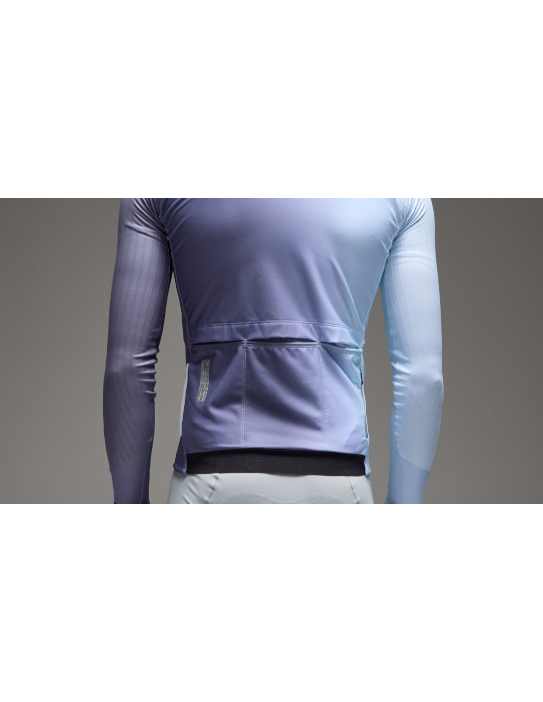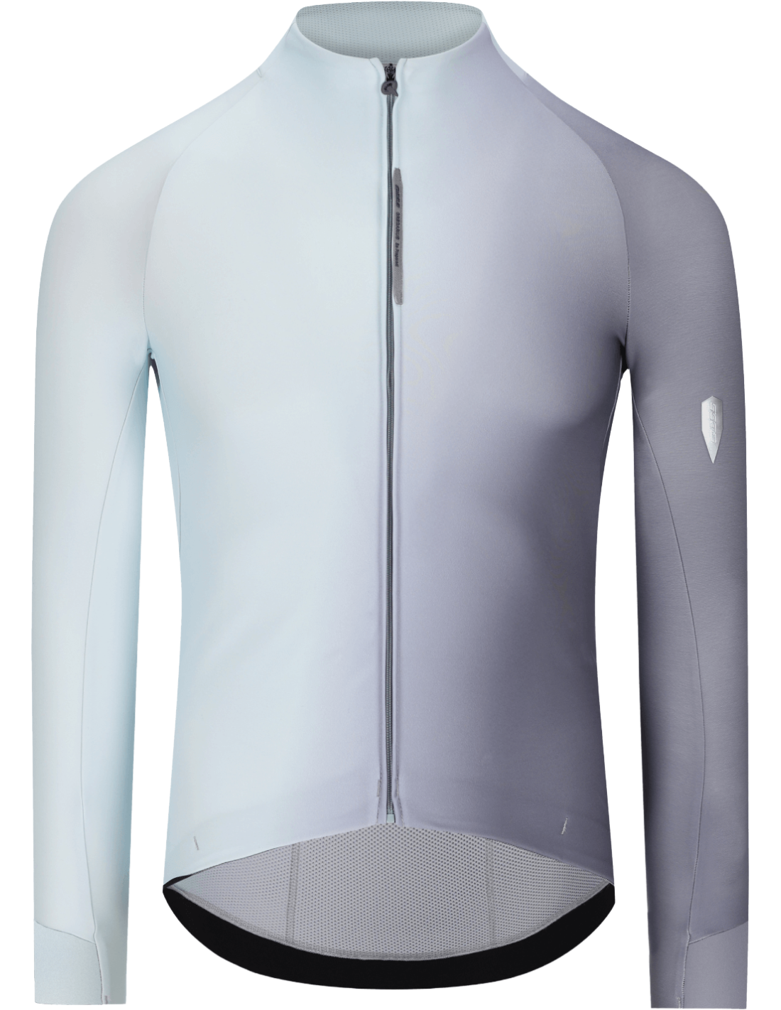 The Q36.5 Gregarius Hybrid Big Fade Long Sleeve Jersey is a smart garment for cold mid-season weather, designed with aerodynamically optimized fabrics and a fit that enhances performance. It uses an exclusive blend of mapped fabrics to offer the perfect balance of insulation, wind protection, and breathability. This balance is key for proper thermoregulation, ensuring you never feel overheated or damp, even during intense training in cold weather.