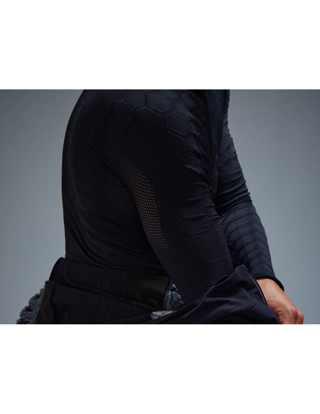 The Q36.5 Base Layer 4 Plus for men is designed to offer superior protection during the coldest winters, combining excellent moisture management and body heat retention. Thanks to its advanced body mapping technology and seamless construction, this garment fits perfectly to the body, providing a second-skin feel. The use of Emana® yarn enhances microcirculation and oxygenation during physical activity, while hollow fibers increase insulation and reduce moisture buildup. Its unique honeycomb panel and open mesh design ensure effective thermoregulation and exceptional comfort, even during the most intense workouts.