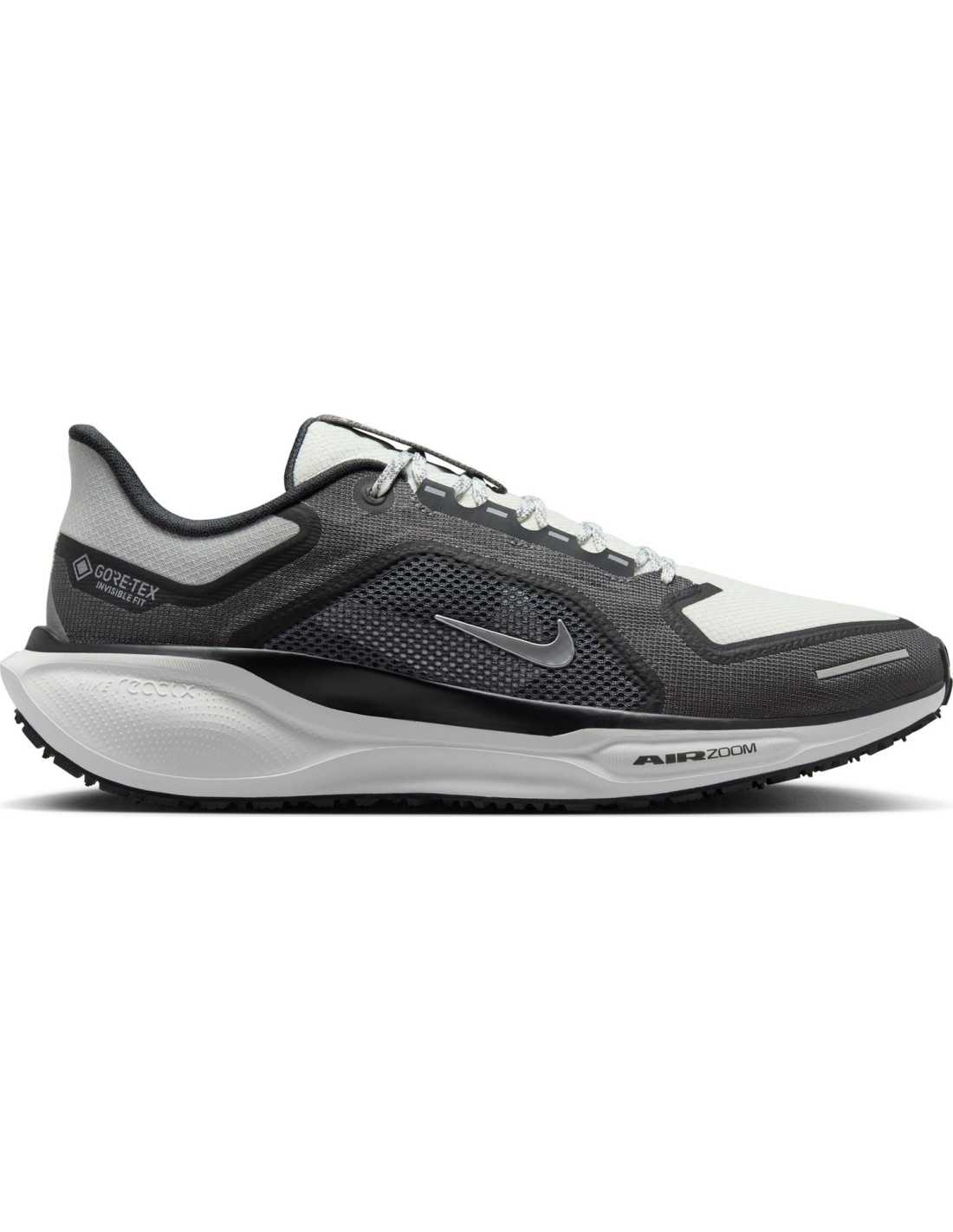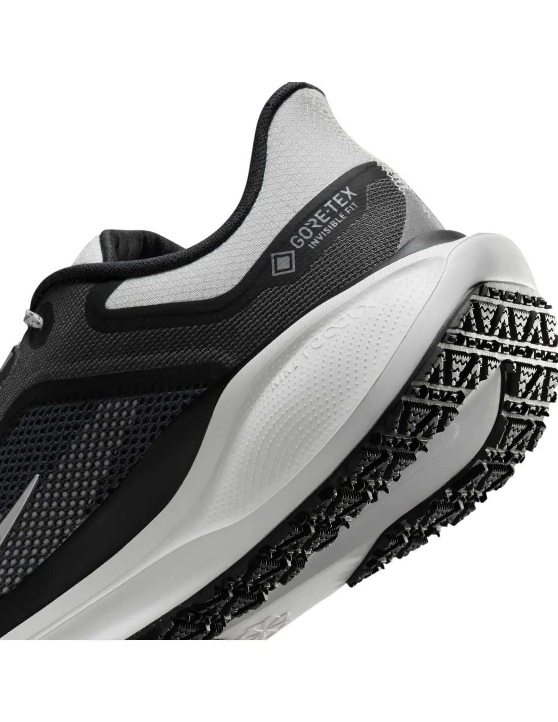 The Nike Pegasus 41 GORE-TEX shoes are designed for runners looking to face bad weather with comfort and performance. These waterproof running shoes feature reactive cushioning that provides an energetic stride on wet surfaces, thanks to the incorporation of the double Air Zoom unit and the ReactX foam midsole. The GORE-TEX upper ensures waterproofing, while the reflective elements increase visibility in low-light conditions. Additionally, their design focuses on sustainability by reducing the carbon footprint during manufacturing.