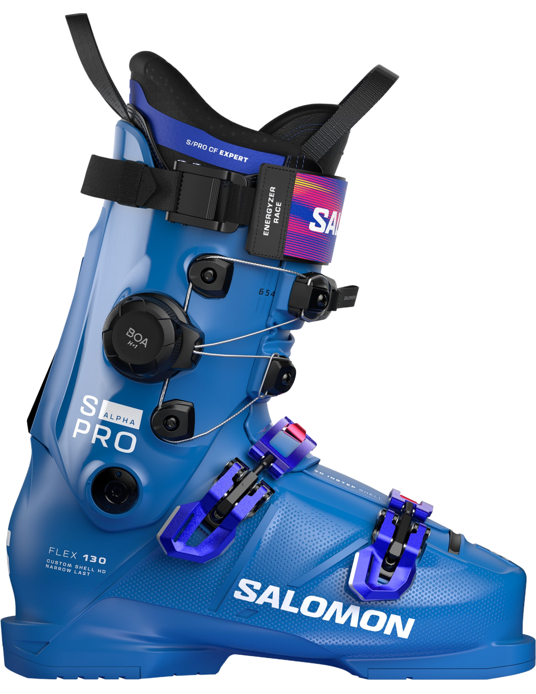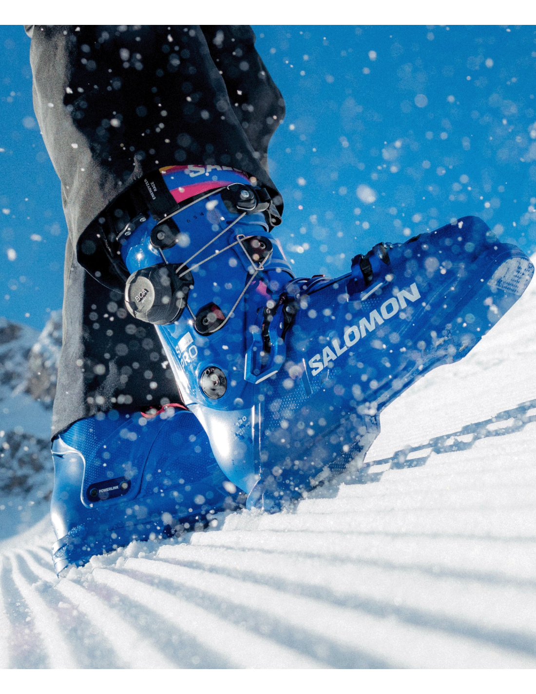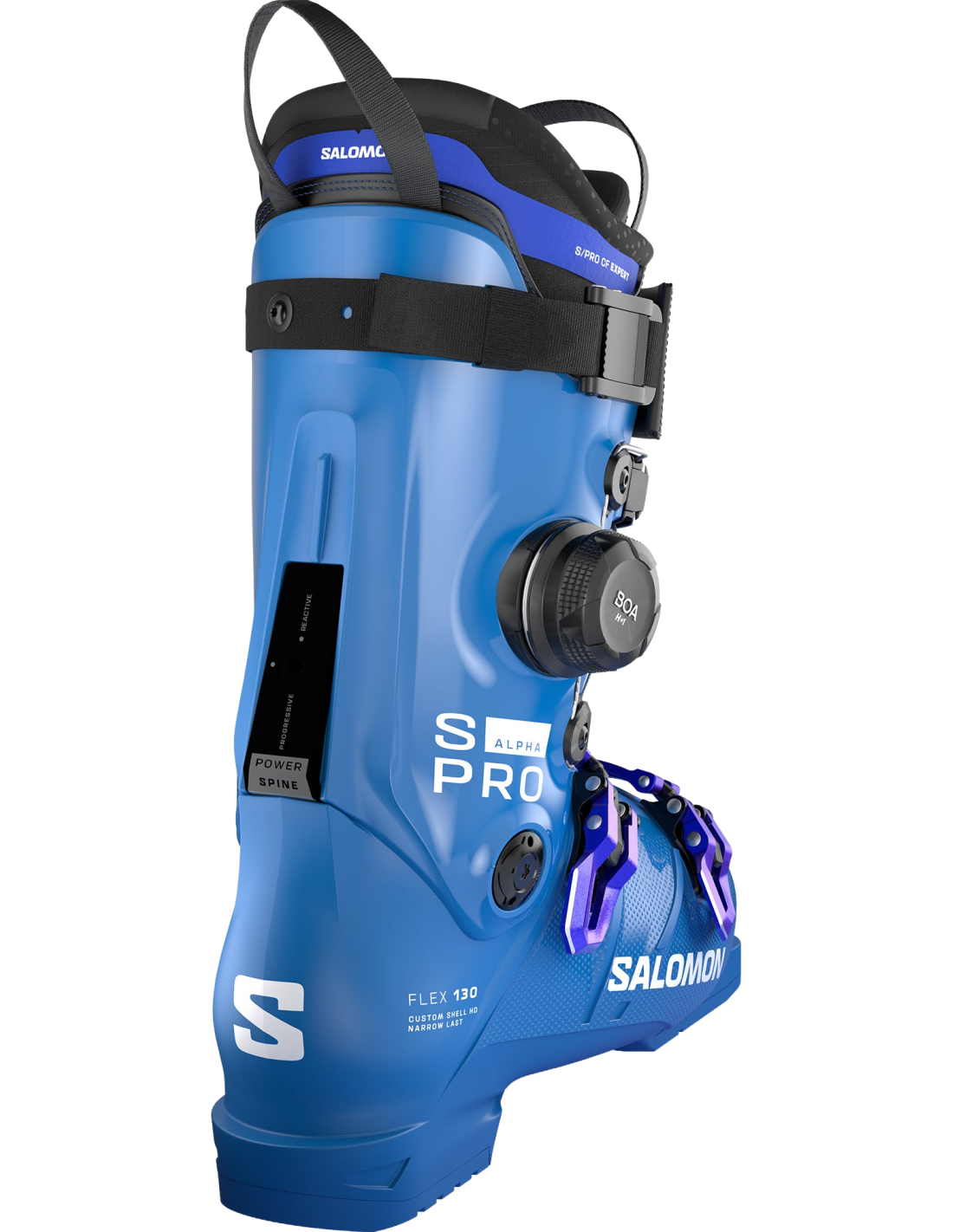 The S/PRO ALPHA C BOA 130 alpine ski boots from Salomon are designed to offer exceptional fit and performance. Based on the original Alpha model, these boots incorporate the innovative ExoDrive construction and Salomon's Powerlink lower pivot, ensuring unprecedented energy transmission, precision, and confidence. With a 98 mm fit, these boots ensure a perfect fit, while the BOA® Fit system, located at the back, provides precise adjustments and micro-adjustable control. Especially designed for advanced skiers, these boots bring together cutting-edge technology to maximize the snow experience.