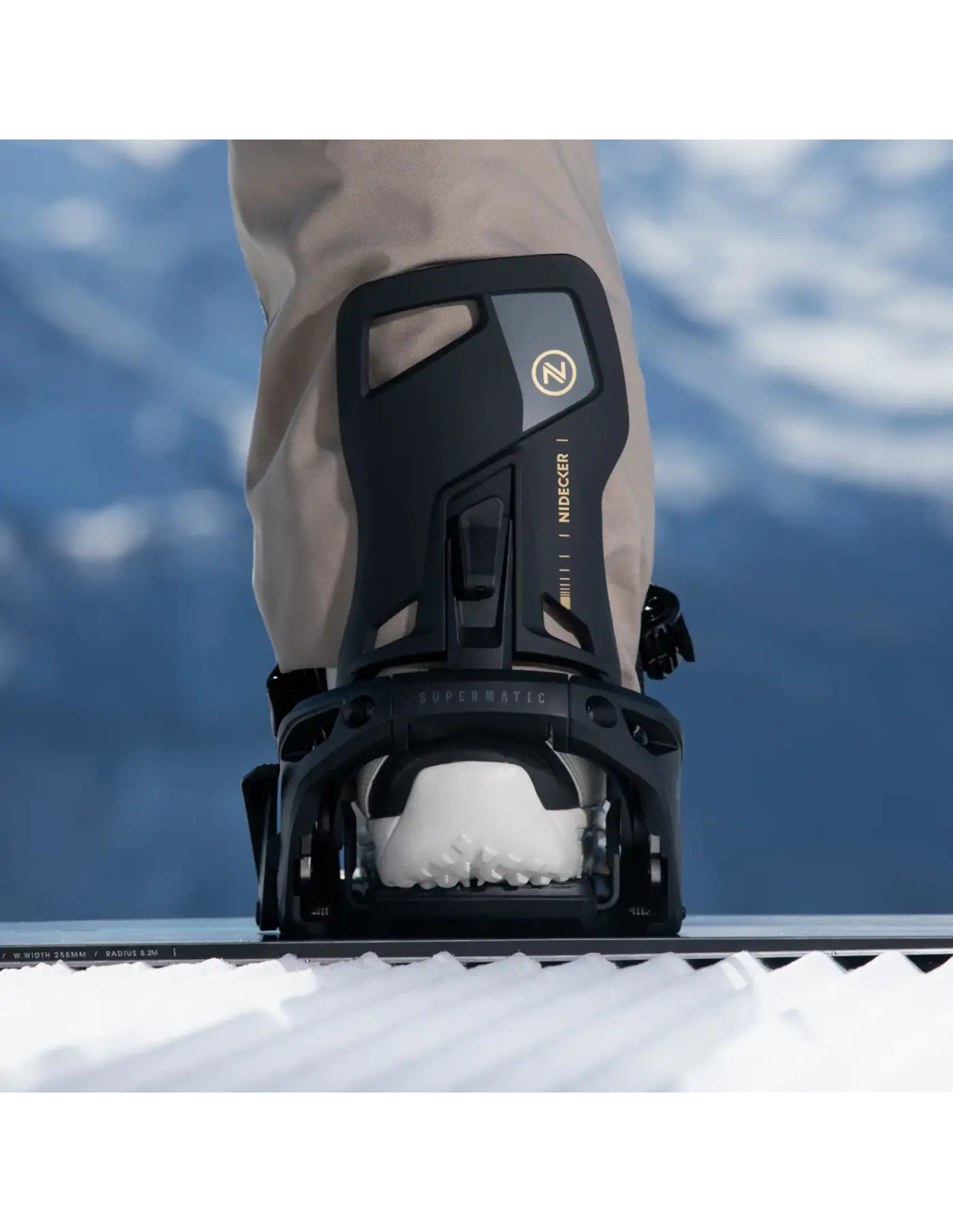 The NIDECKER OG SUPERMATIC men's snowboard bindings are a revolutionary innovation in the world of snowboarding, being the world's first automatic bindings that work with any boot. Designed to offer versatile performance and medium stiffness, these bindings allow for quick and easy entry and exit. By simply pushing the foot back and pressing the heel pedal, the hiback automatically lifts, ready for action on any terrain. Additionally, if conditions require, the ratchets can be operated traditionally. Perfect for those seeking comfort and speed, these bindings eliminate the need to adjust buckles, allowing riders to start enjoying immediately when getting off the chairlift.