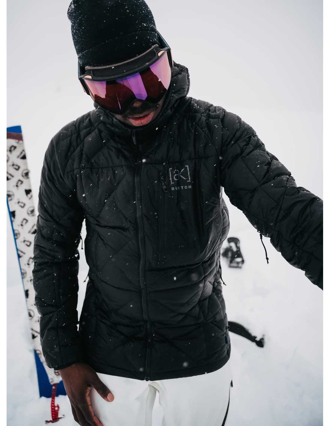 The Burton [ak] Baker down jacket with hood for men is the essential garment for mountain top adventures and cold transitions on climbing routes. Its versatile design allows it to be used as a single layer or combined with other garments for maximum thermal protection. Additionally, it is easily packable into its own bag, making it a convenient addition to any travel or hiking gear.