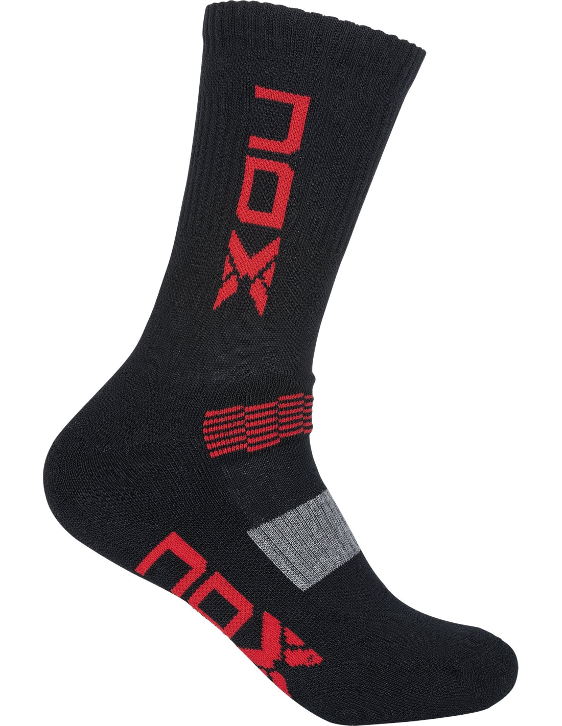 These Nox Media Caña Technical Socks are designed for regular players who endure a high weekly training load. They offer a perfect fit for the player's foot, ensuring comfort and support during intense sessions. Featuring a sleek black color with a white logo, these socks are crafted to meet the demands of serious athletes.