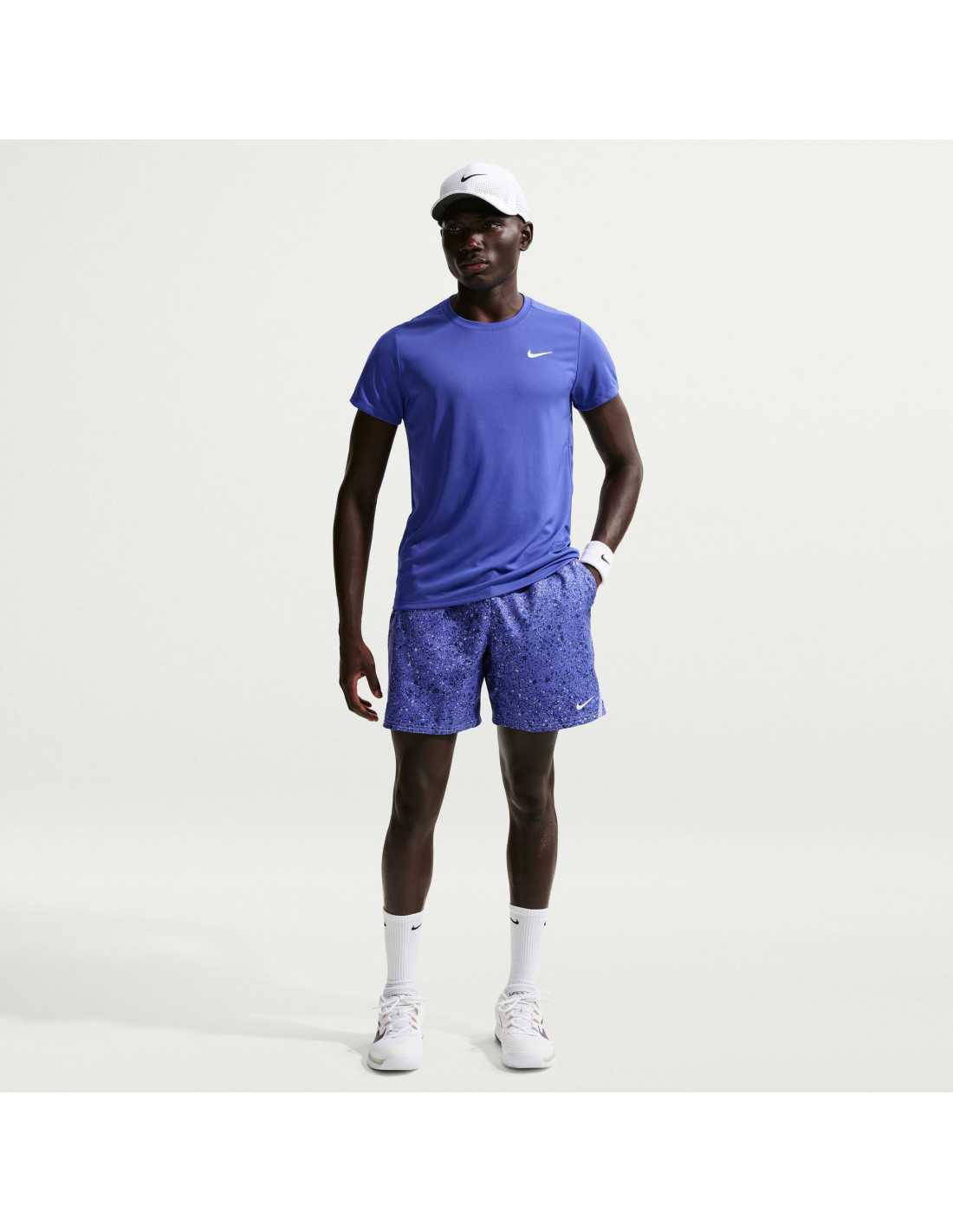 The men's NikeCourt Victory tennis shirt is designed for those seeking performance and comfort on the court. With a classic fit, this shirt is highly breathable, stretchy, and features sweat-wicking properties, allowing you to focus on your game. Its Dri-FIT technology helps keep your skin dry, while the soft knit fabric ensures a light and airy feel. Strategically placed seams on the back of the shoulders enhance mobility, allowing you to turn and hit with ease, while the reinforcements on the side seams provide additional stretch.