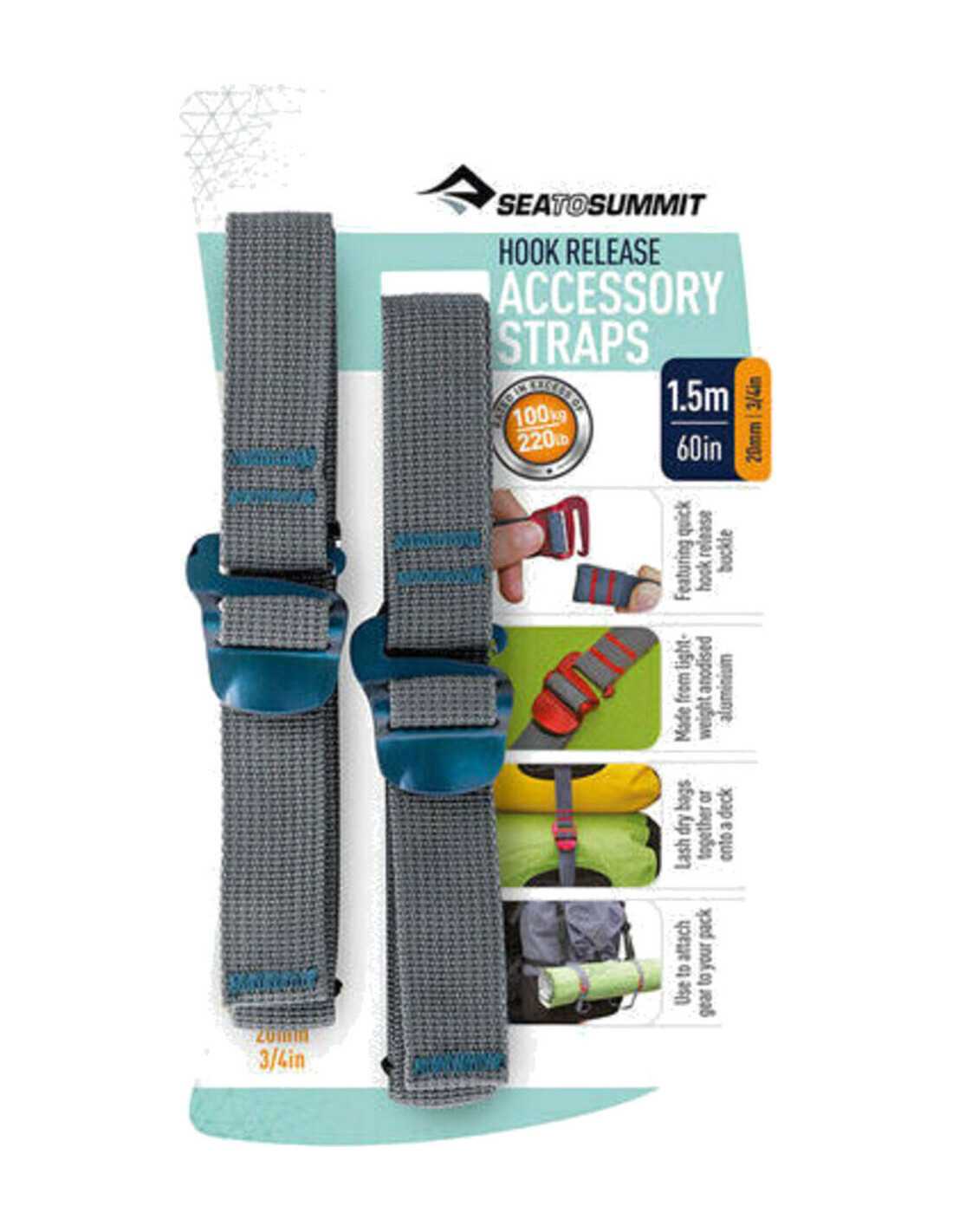 Add more versatility to your outdoor gear bag with Sea to Summit Accessory Straps. These durable webbing straps featureightweight, yet durable, anodized aluminum alloy buckles with a quick-release hook design. Great for strapping gear to roof racks