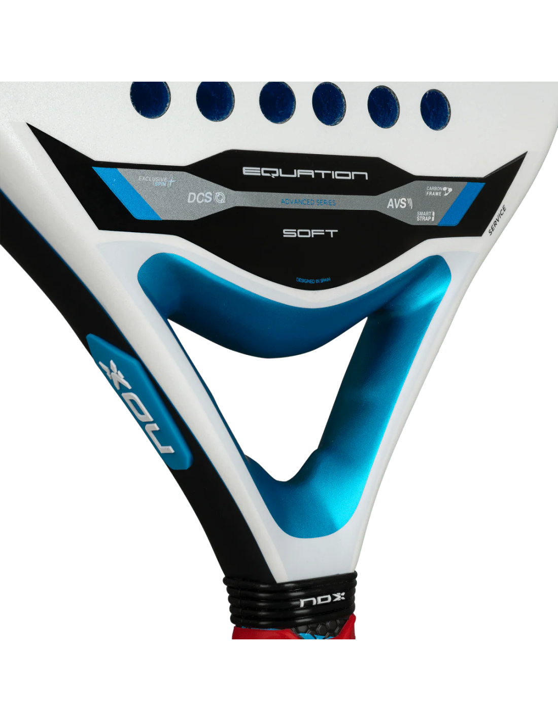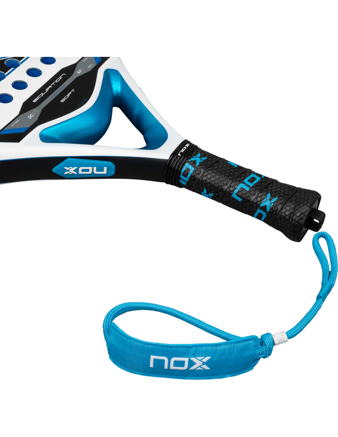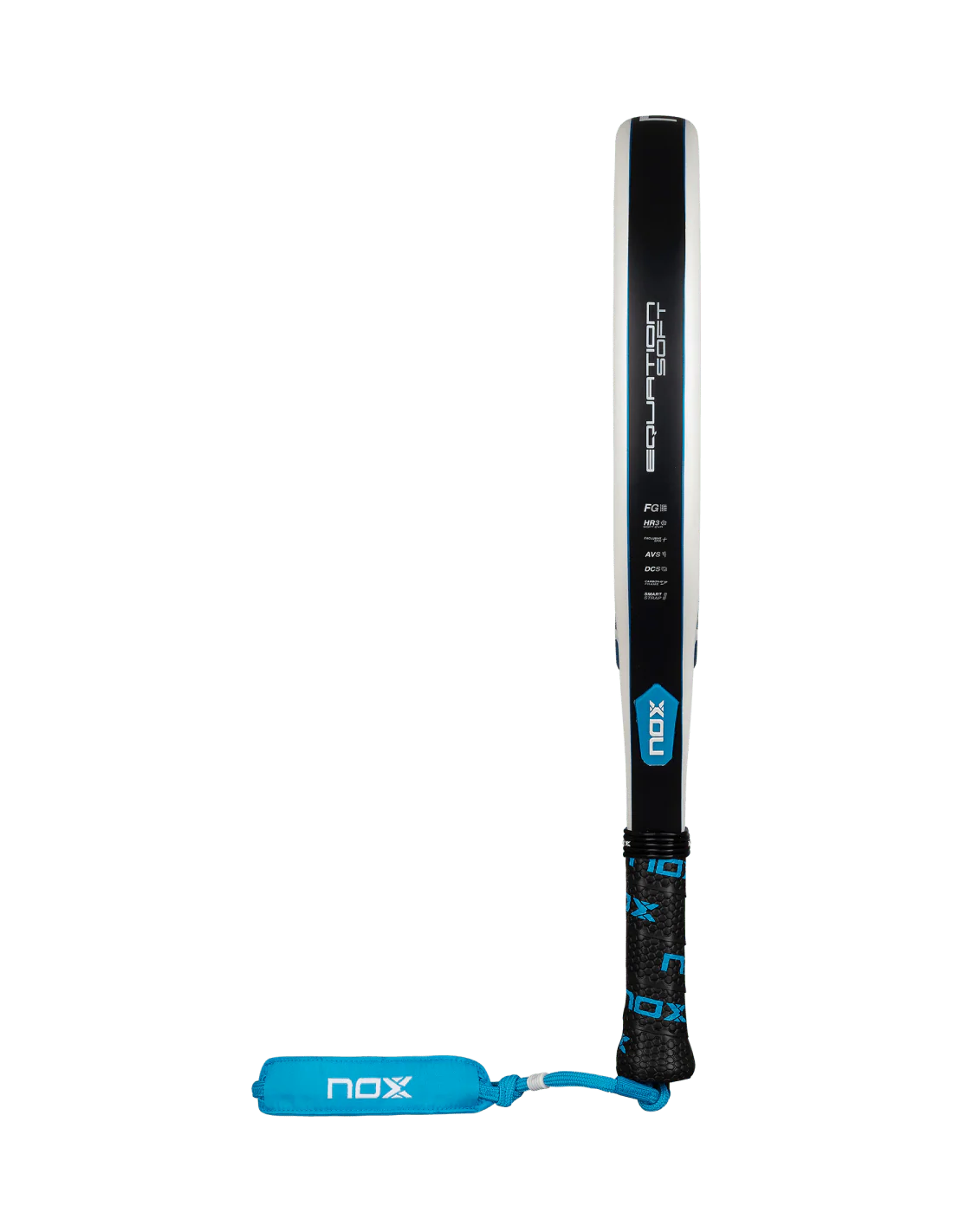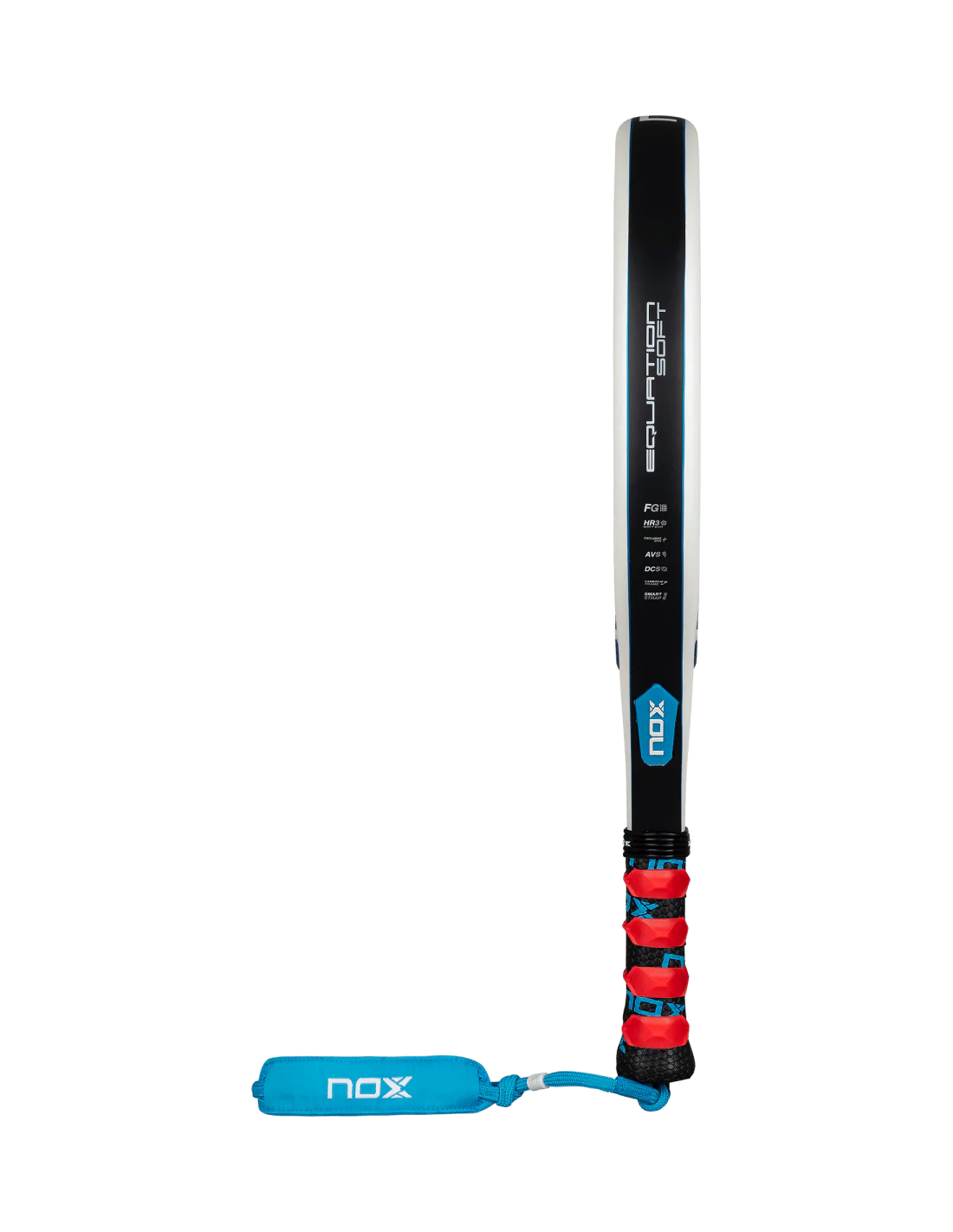 The Nox Equation Soft Advanced paddle racket, designed for players seeking a softer touch, features a specific core that provides greater ball rebound and more comfortable hitting, ideal for long or intense sessions. It maintains a medium balance and includes a carbon frame and an anti-vibration system to reduce the risk of injury without compromising performance. Its rough surface Exclusive Spin faces optimize spin generation, while the Smartstrap® system facilitates the replacement of the safety cord, offering a more hygienic, safe, and customizable option.