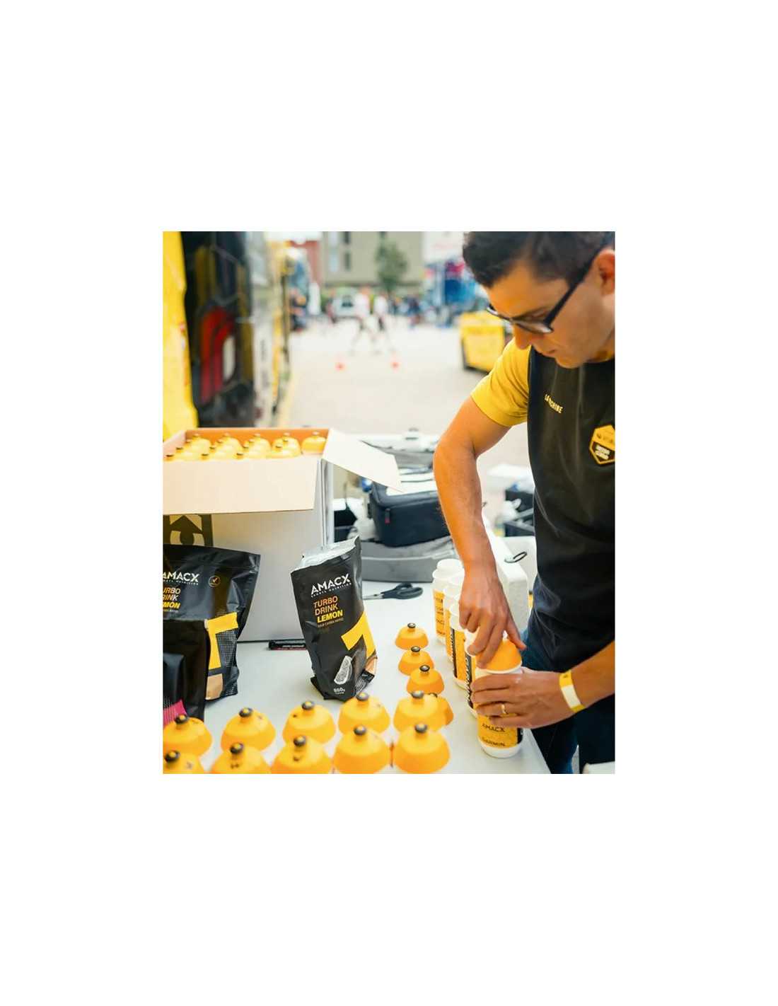 The AMACX Turbo Drink Sports Beverage in watermelon flavor is designed to efficiently replenish energy during intense and prolonged training sessions. Each serving provides 40 grams of carbohydrates, ensuring optimal absorption thanks to its correct glucose to fructose ratio of 1:0.8. This balance helps prevent digestive issues, allowing athletes to maintain their performance without interruptions. Additionally, its formula enriched with essential electrolytes like potassium and calcium helps maintain electrolyte balance during exercise. Ideal for physical efforts lasting more than 2 hours, this drink is available in refreshing lemon and watermelon flavors.