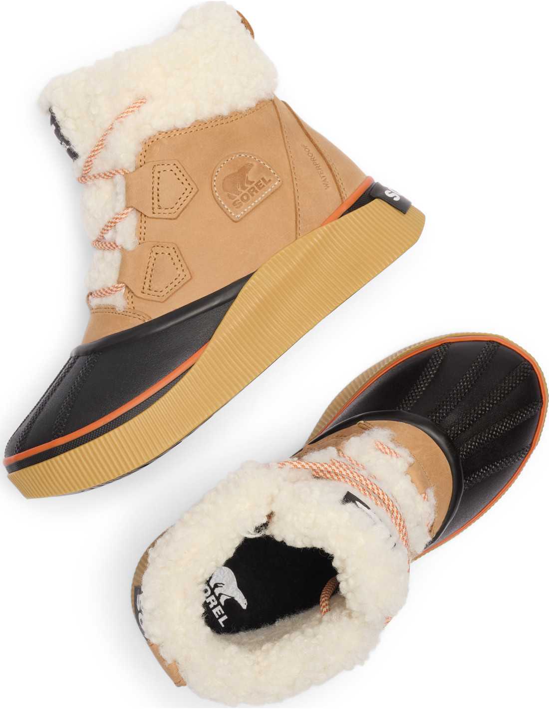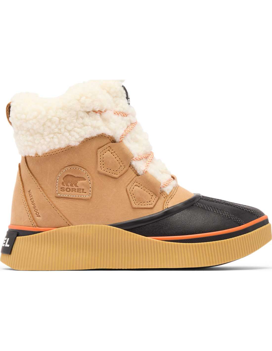 - Upper: Waterproof full-grain leather with synthetic shearling and microfleece lining