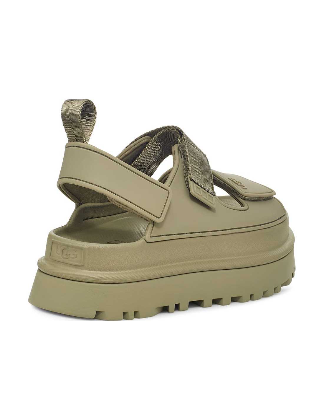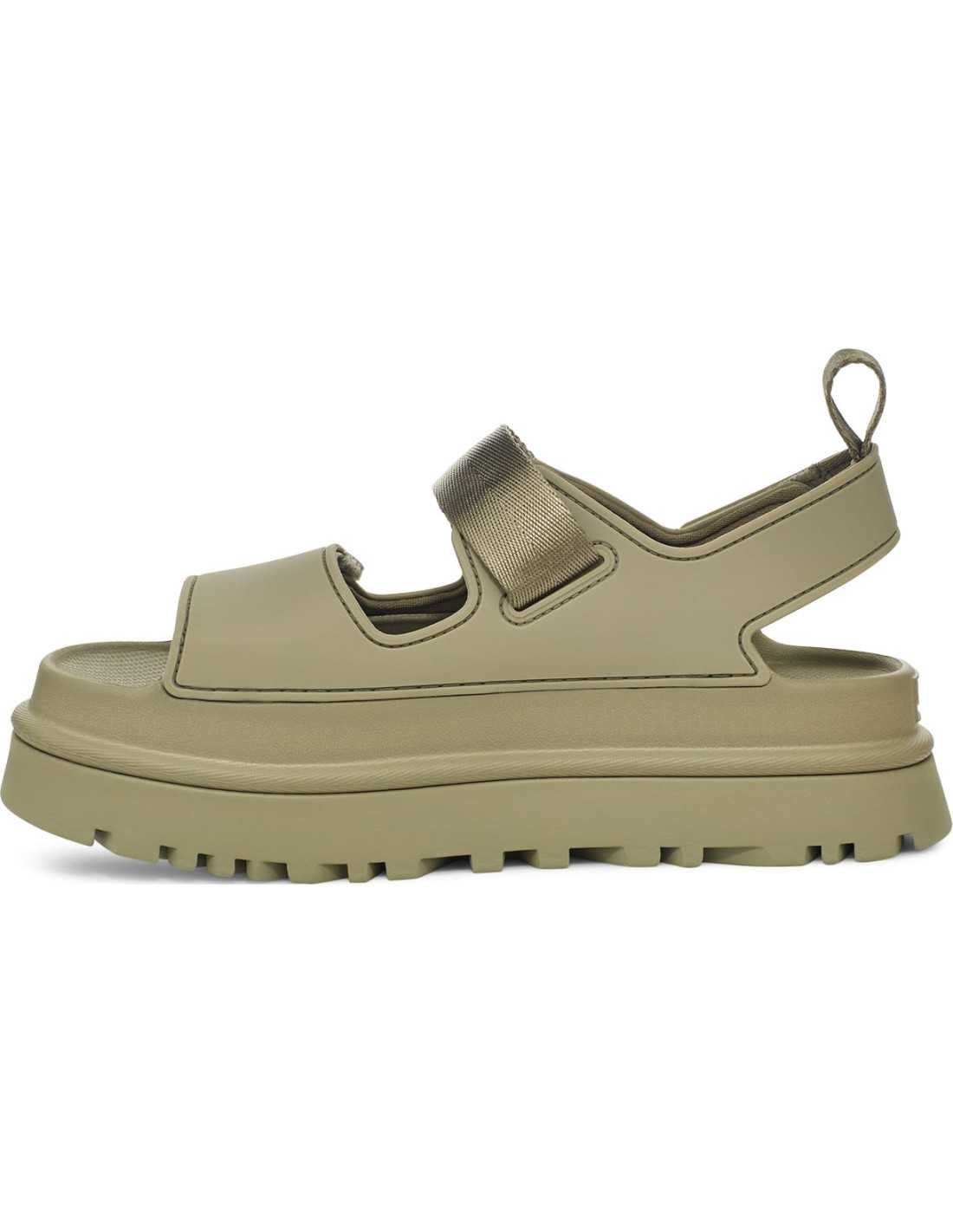 Enjoy the GoldenGlow. Super lightweight and extremely comfortable, the GoldenGlow sandal is perfect for water, with a total fit. It is made from sugarcane EVA, elastic and supportive, ready to be used in rain and sun. Stacked on a platform with a grip sole and a sticky insole, this pair has a design as dynamic as the feeling it will provide you.