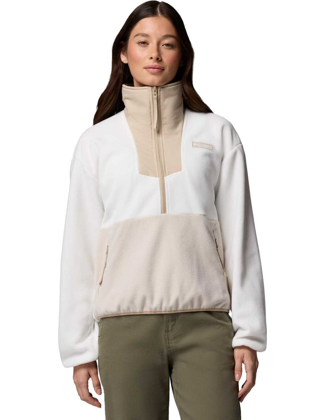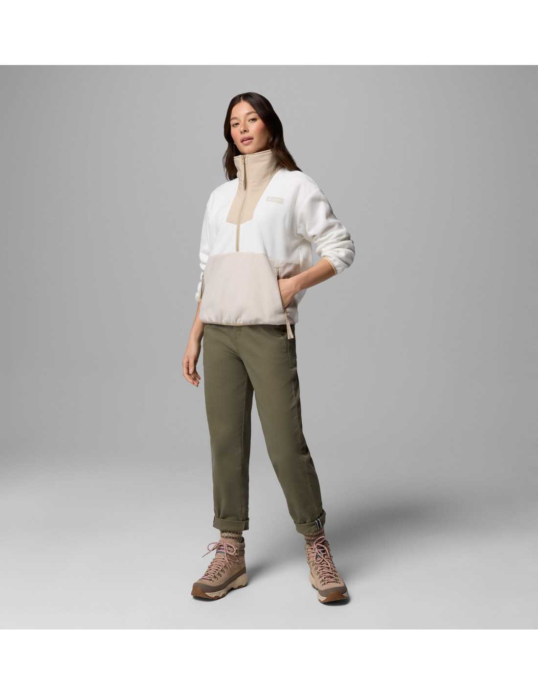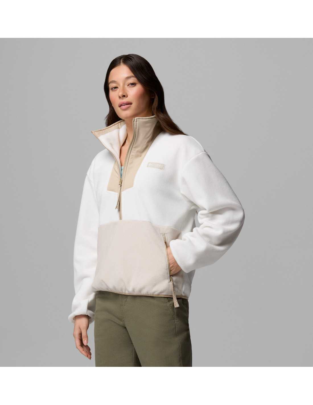 This Columbia women's half-zip fleece is an ideal choice for both daily work and relaxing moments at the campsite. Made from 100% recycled polyester, it offers a classic and casual style. The elastic trims at the neck, cuffs, and hem ensure a comfortable fit, while the practical zippered pockets keep your belongings safe.