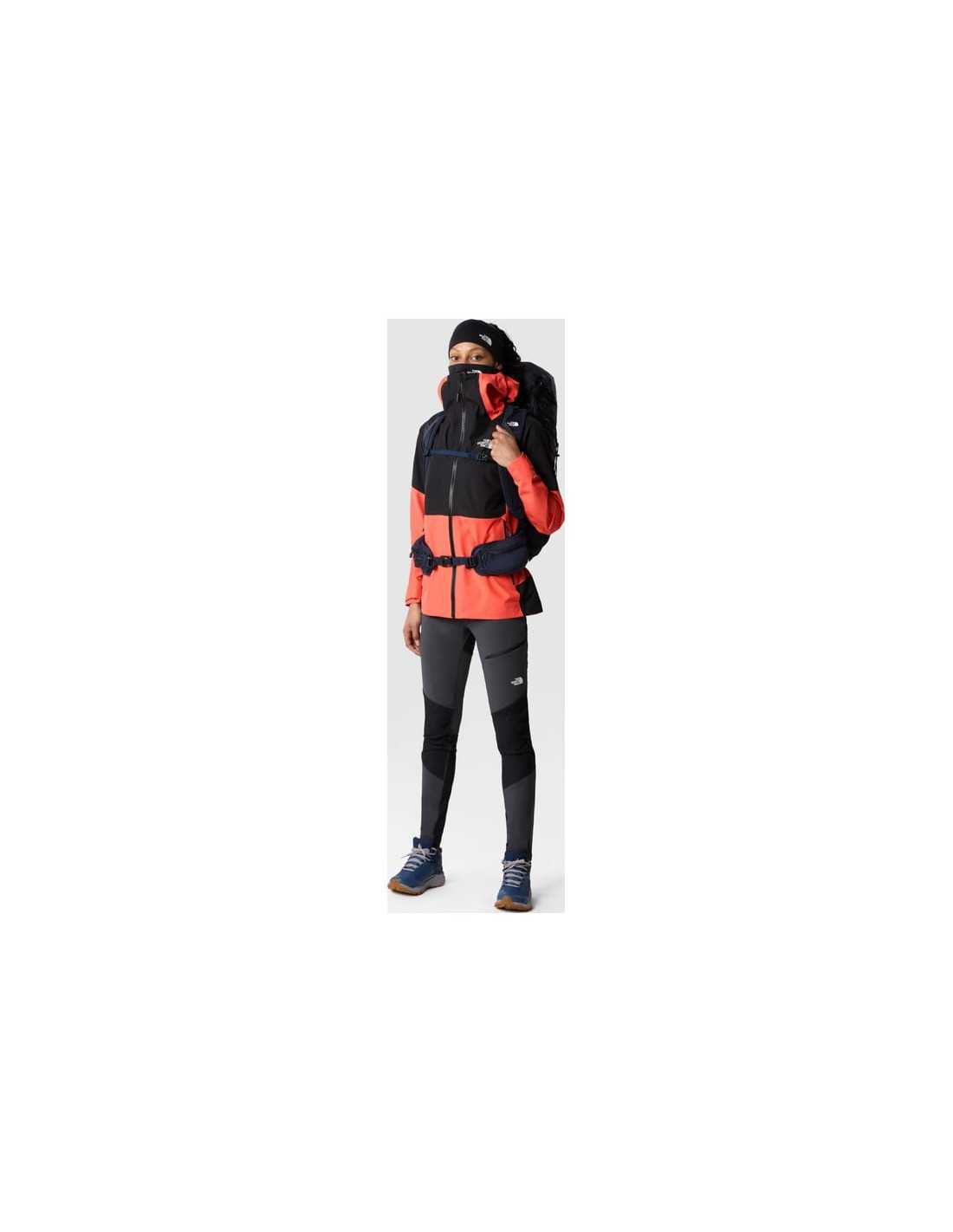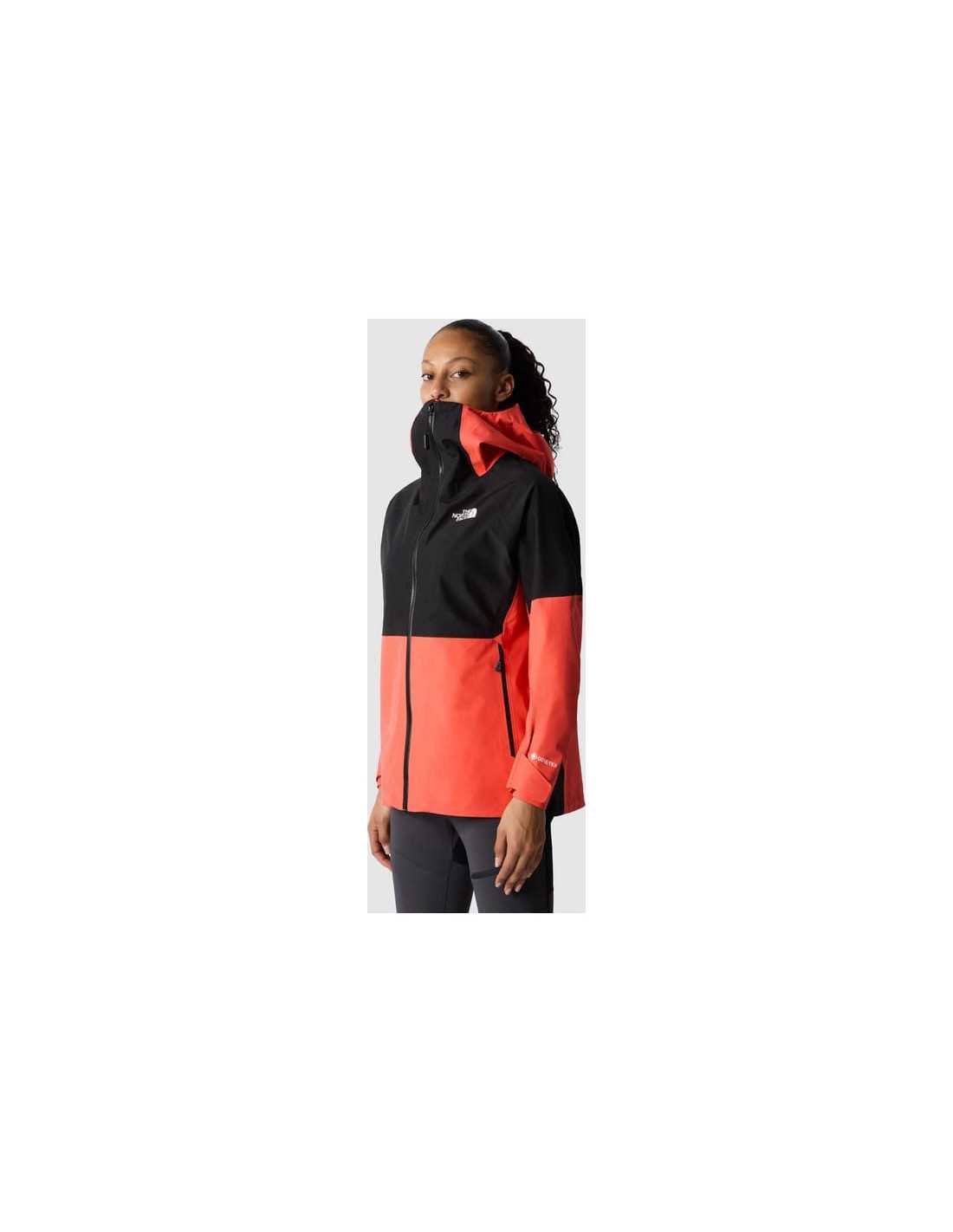 The North Face Jazzi GORE-TEX® Jacket is designed to offer protection against the elements during wet and windy hikes. Made with a 162 g/m² GORE-TEX® fabric, this jacket ensures waterproofness and breathability, keeping the wearer dry and comfortable. It features a PFC-free water-repellent finish, a helmet-compatible adjustable hood, and practical hand pockets and an internal chest pocket. Details like underarm zippers and VELCRO® closures on the sleeves ensure functionality and comfort.