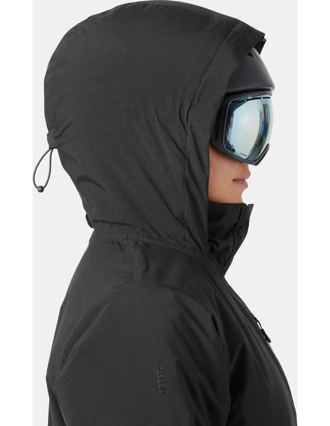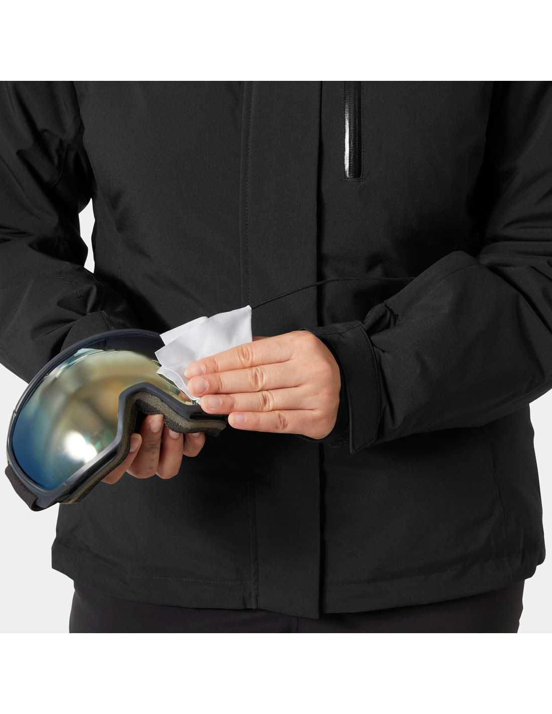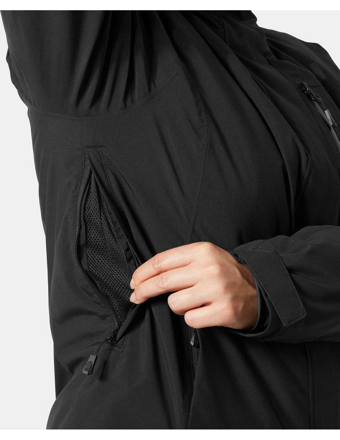 This women's ski jacket is the ideal choice for those seeking protection and style on the slopes or in the village. Designed with HELLY TECH® Protection technology, this garment offers waterproof, windproof, and breathable protection for winter conditions. Its lightweight synthetic insulation of 80 g provides warmth without adding bulk. Additionally, it features a foldable hood that conveniently stores in the collar, double storm flaps, and a brushed fleece lining for added comfort. Practical features include underarm ventilation zippers, a ski pass pocket, and an adjustable snow skirt.