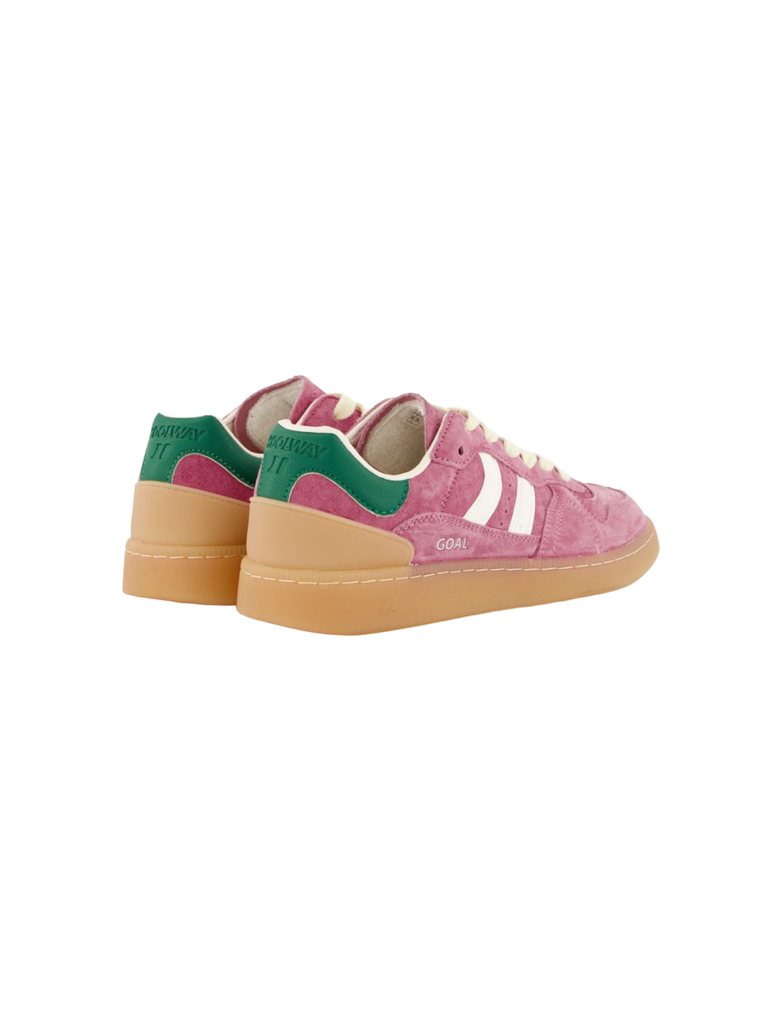 These Coolway sports shoes offer a retro-sporty design with an urban touch that perfectly fits the modern lifestyle. Made from high-quality suede with contrasting panels, these shoes stand out not only for their appearance but also for their comfort. The preformed and padded tongue, along with the slightly padded collar, ensure a comfortable fit, while the interchangeable two-tone flat cotton laces allow you to customize your look. The flexible rubber sole provides durability and excellent grip, ideal for exploring the city with style and comfort. The model name "GOAL" on the side in old gold adds a distinctive touch to this samba-inspired silhouette.
