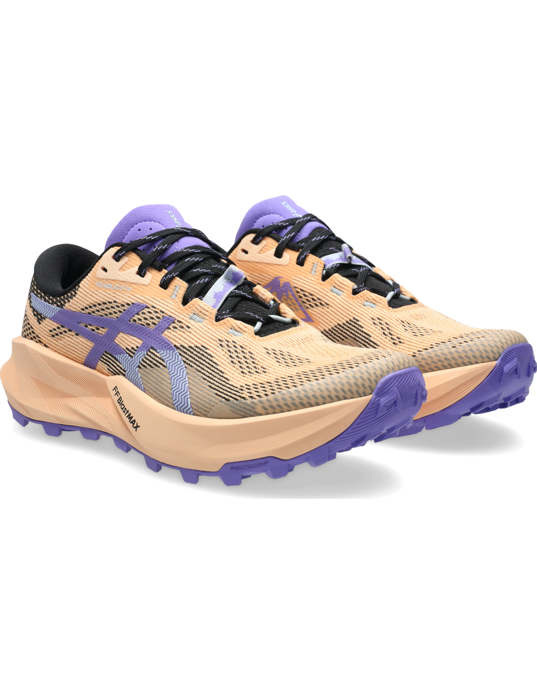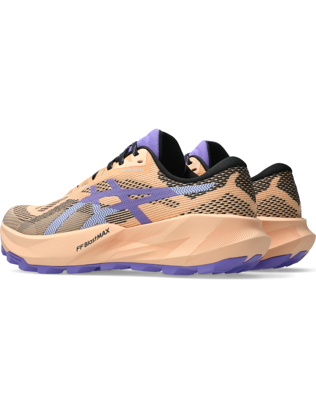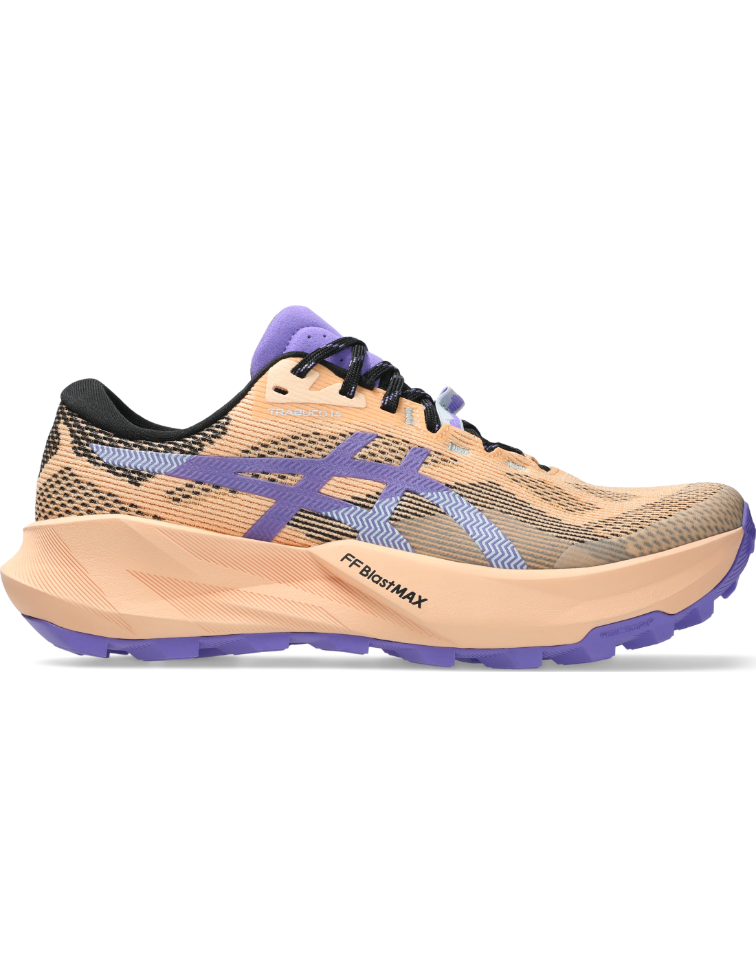 The TRABUCO™ 14 footwear is designed to provide confidence on unpredictable trail terrains. With ASICSGRIP™ technology on the outsole, it offers advanced grip on uneven surfaces. Weighing approximately 4 grams less than its predecessor, this model features an additional 2 mm of FF BLAST™ MAX cushioning for a smooth impact and responsive energy return. Its new trail-specific fit provides better midfoot support, minimizing internal movement and offering a wider forefoot space for greater comfort on long runs. The engineered mesh upper is lightweight and breathable, reducing the need for additional overlays. The lace band on the tongue allows you to secure the laces and prevent them from coming undone. Additionally, it incorporates a rock protection plate and a vegan design.