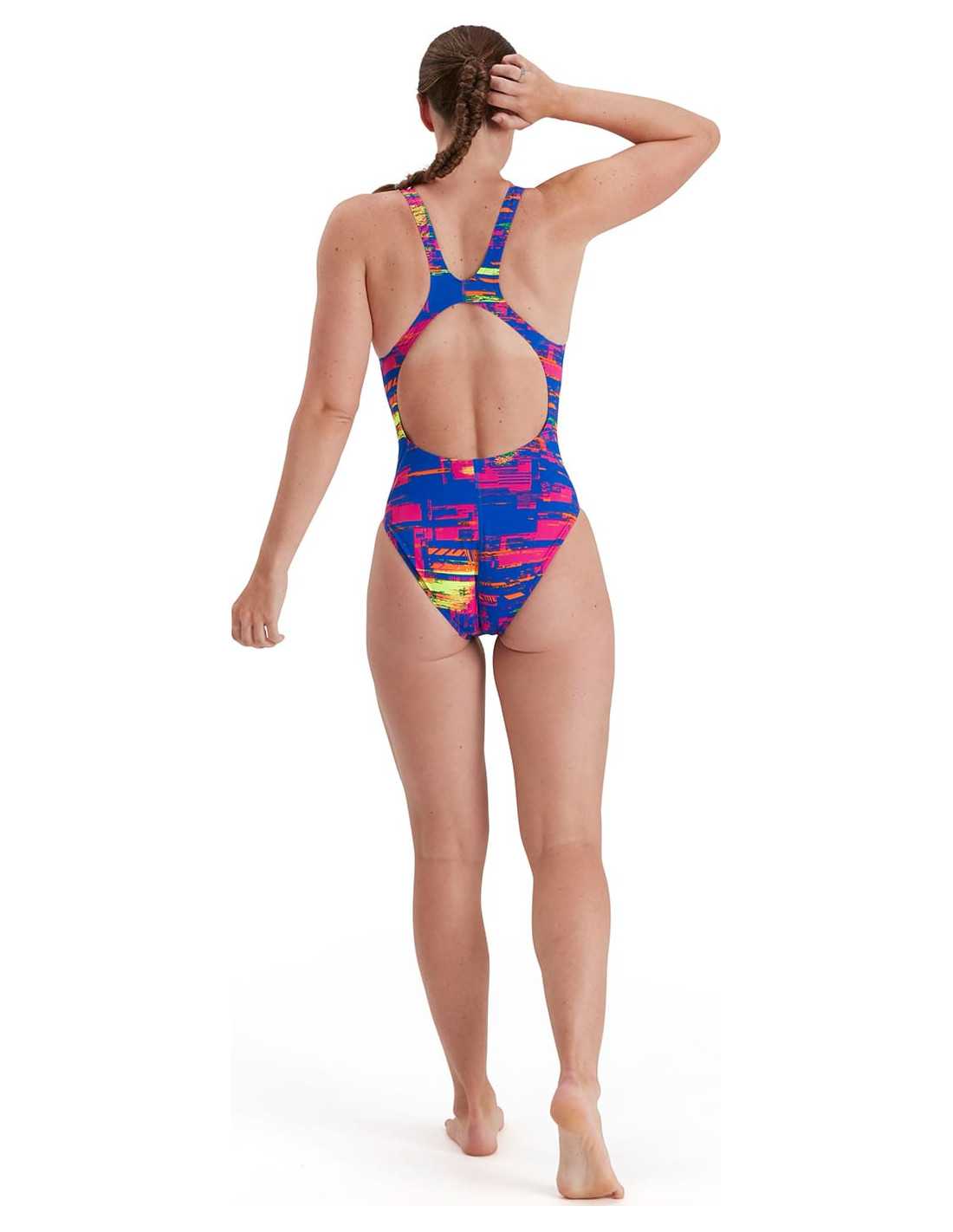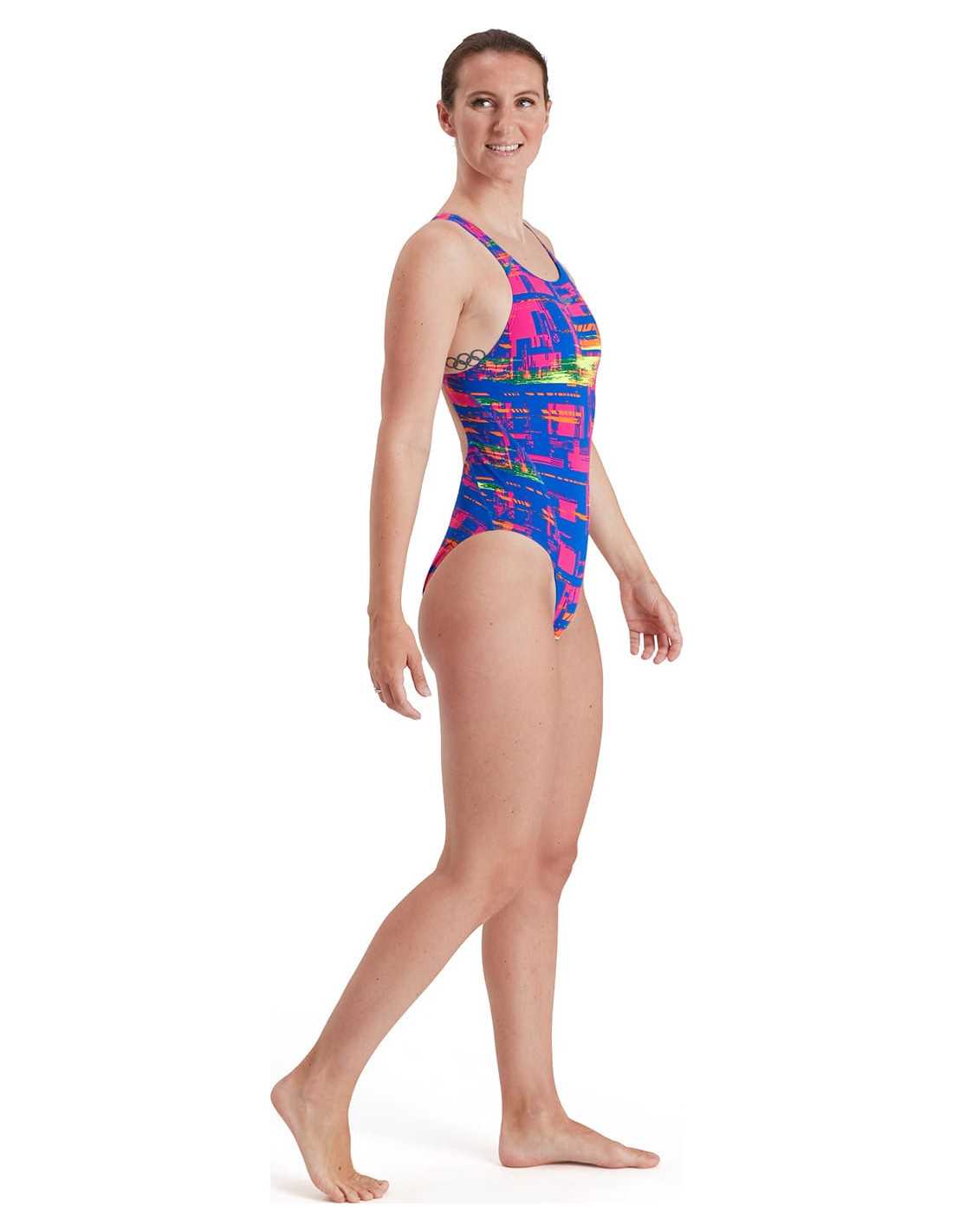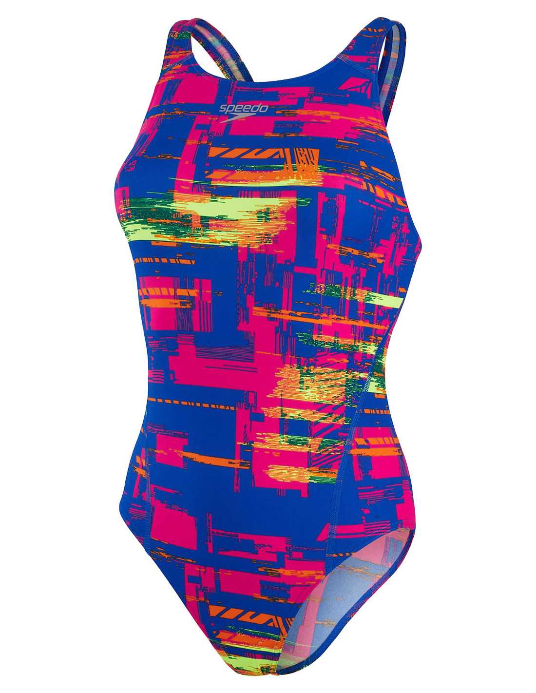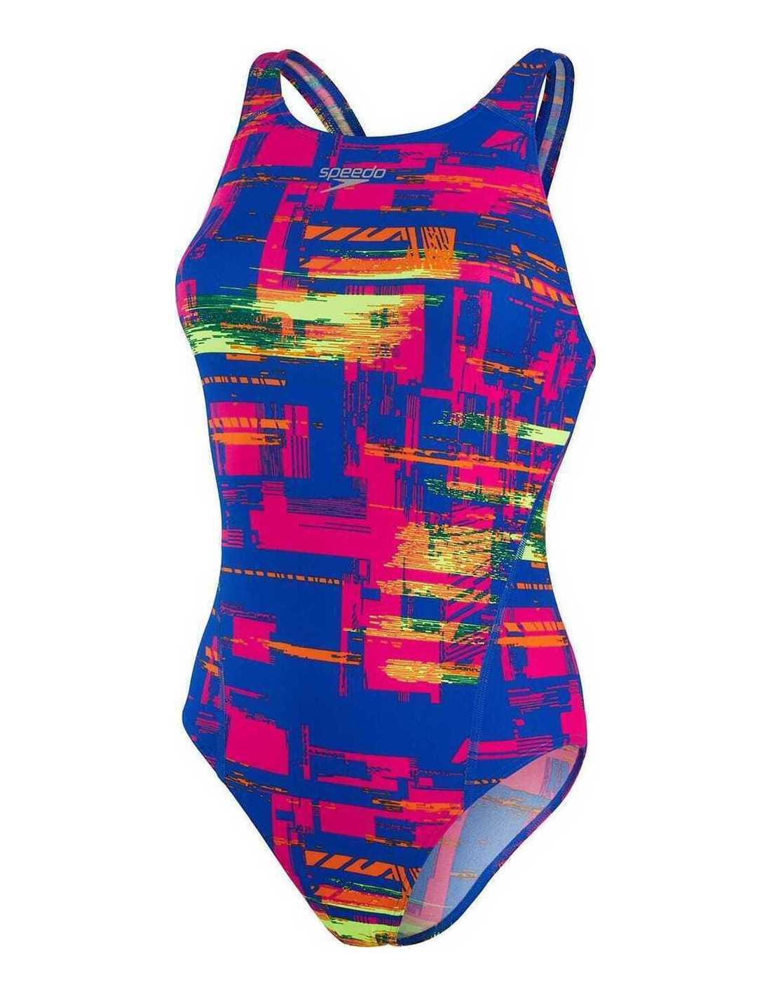 Biofuse Aquat P12 - Diseño de estilo de racor de discotecas de traje de baño y espalda. Este traje de baño, que ofrece una gran flexibilidad, características de un collar alto y un patrón distintivo. Hecho en resistencia + 100% resistente al cloro y diseñado para durar más.