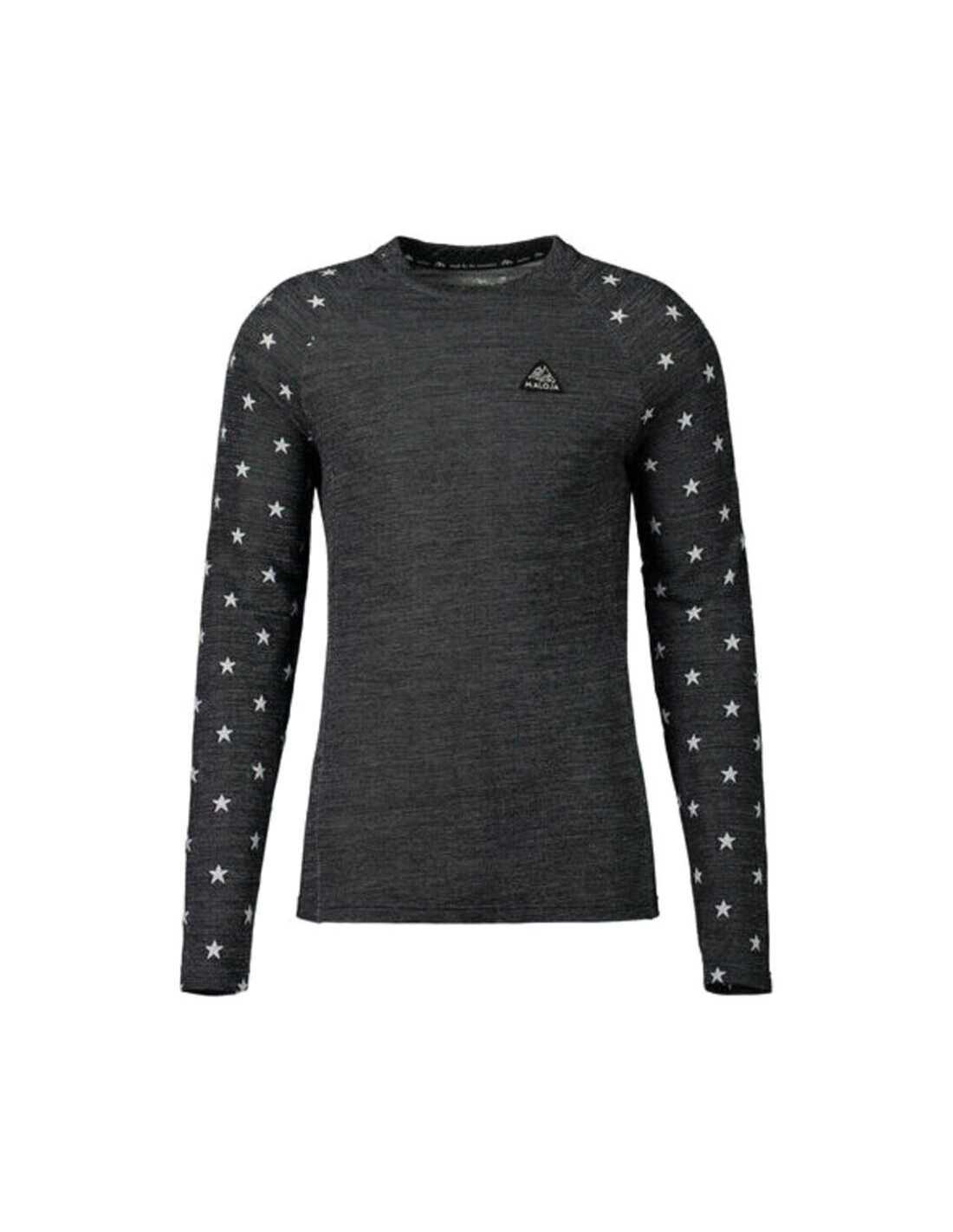 Camiseta interior multideporte en merino. Camiseta interior multideporte bielástica ajustada para hombre en tejido merino, de secado rápido y con buen aislamiento térmico, con estrellas allover. Parche de Maloja en el pecho.
