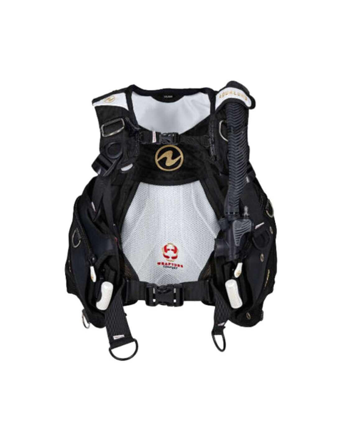 - Sistema de arnés de Wrapture - hebillas de hombro giratorias patentadas y la placa posterior ultra delgada proporcionan comodidad sin igual y evita evitar La tendencia del BCD a subir. Fuera del agua, podrá mantenerse en posición vertical manteniendo el cilindro cerca de su centro de gravedad y transferir su peso a las caderas.