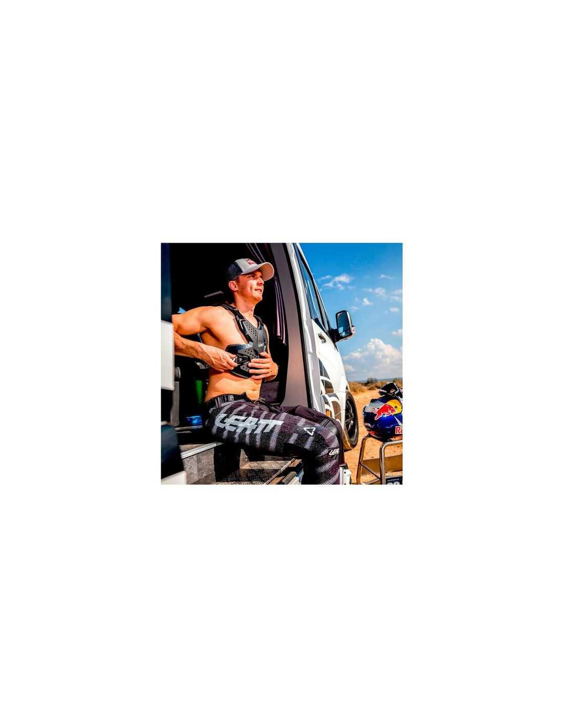 Nuevo protector de cofre muy ligero y ventilado, aprobado contra los impactos, que combina protección dura con protección suave. La carcasa externa de plástico duro y la caparazón interna de espuma de impacto de Airfit 3DF, tanto muy perforados como en 3D, asegurando un ajuste muy cómodo y ventilado. Las placas delanteras y traseras son extraíbles y el sistema de ajuste de aparato ortopédico con el cuello de Braceon permite su uso sobre o debajo de las camisas Leatt®. Homologación CE probada y certificada como protección contra los impactos en el cofre y la parte posterior EN1621 Nivel 1. Certificado para el FIM (motociclismo internacional (motociclismo internacional Federación) y el FFM (Federación de motociclismo francés). Peso: 750g. Unisex Fit: 70 a 90 kg.